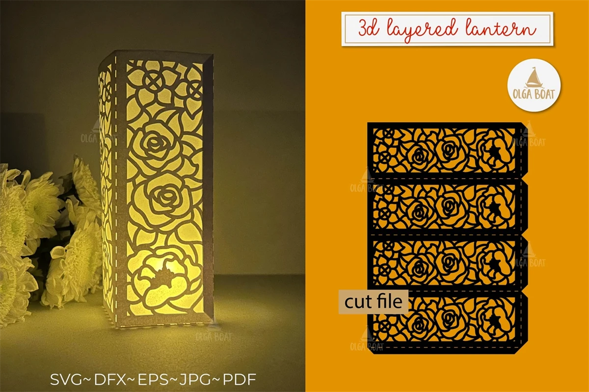 Decorative lamps with roses, peonies and wildflowers for nature lovers. 3d Flower lantern perfect for a home decorations, greetings, papercraft. mothers day gift.