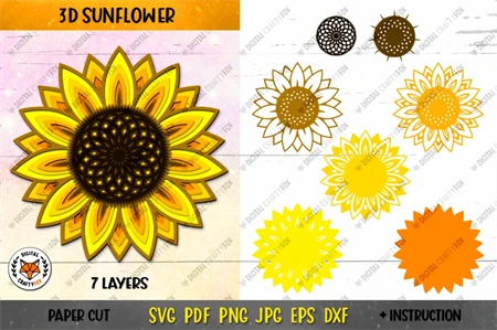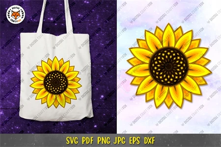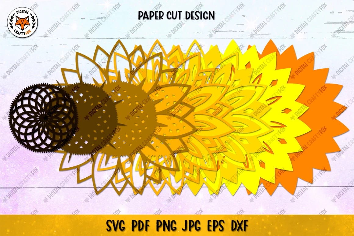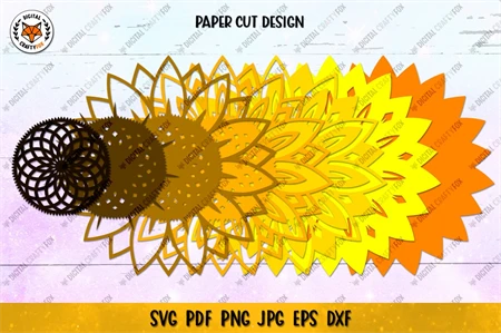 3D Sunflower Mandala. For cutting or sublimation. 3D paper cut design.