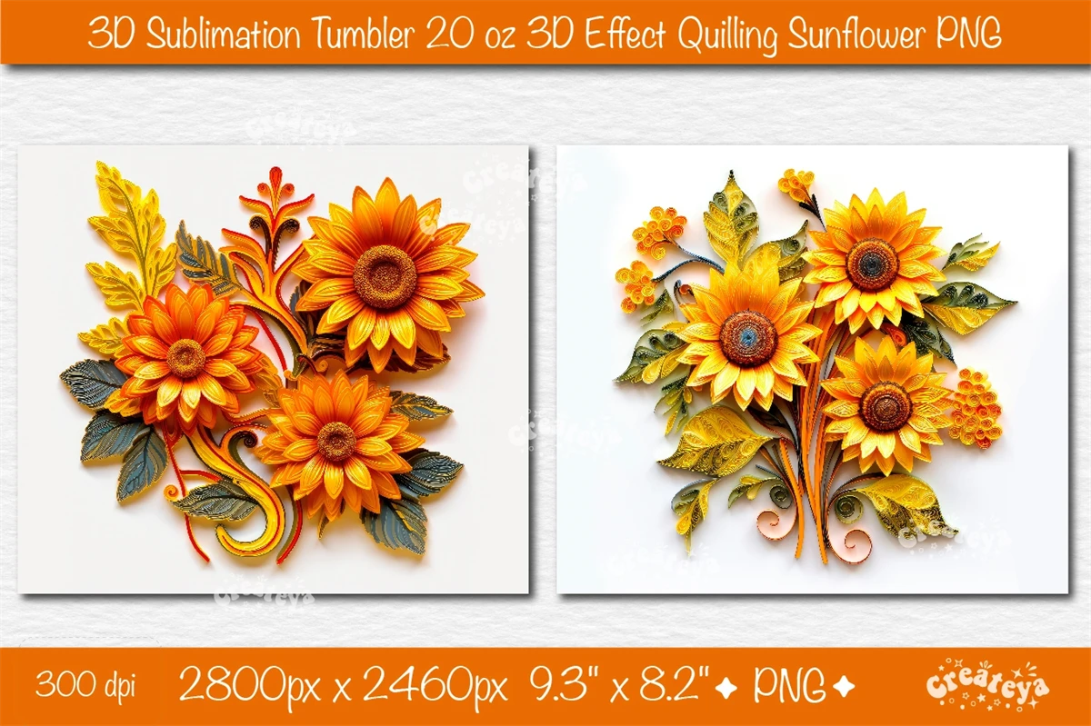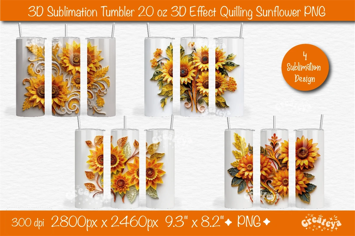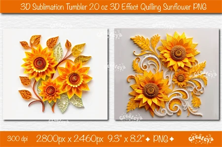 3d Sunflower tumbler wrap Bundle Sunflower 3d sublimation tumbler wrap tumbler bundle 20 Oz sublimation design PNG. The art of 3D Quilling inspires this 20 oz skinny 3d Sunflower Quilling tumbler sublimation design bundle and includes 4 Sunflower designs.