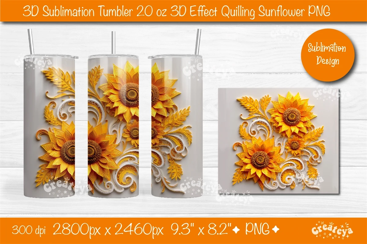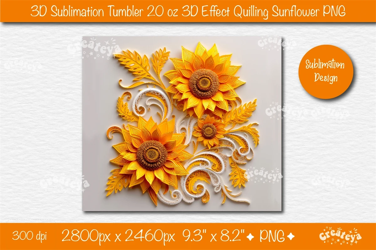 3d Sunflower tumbler Sunflower 3d sublimation tumbler wrap tumbler 20 Oz sublimation design PNG. This 20 oz skinny 3d Sunflower Quilling tumbler sublimation design is inspired by the art of 3D Quilling.