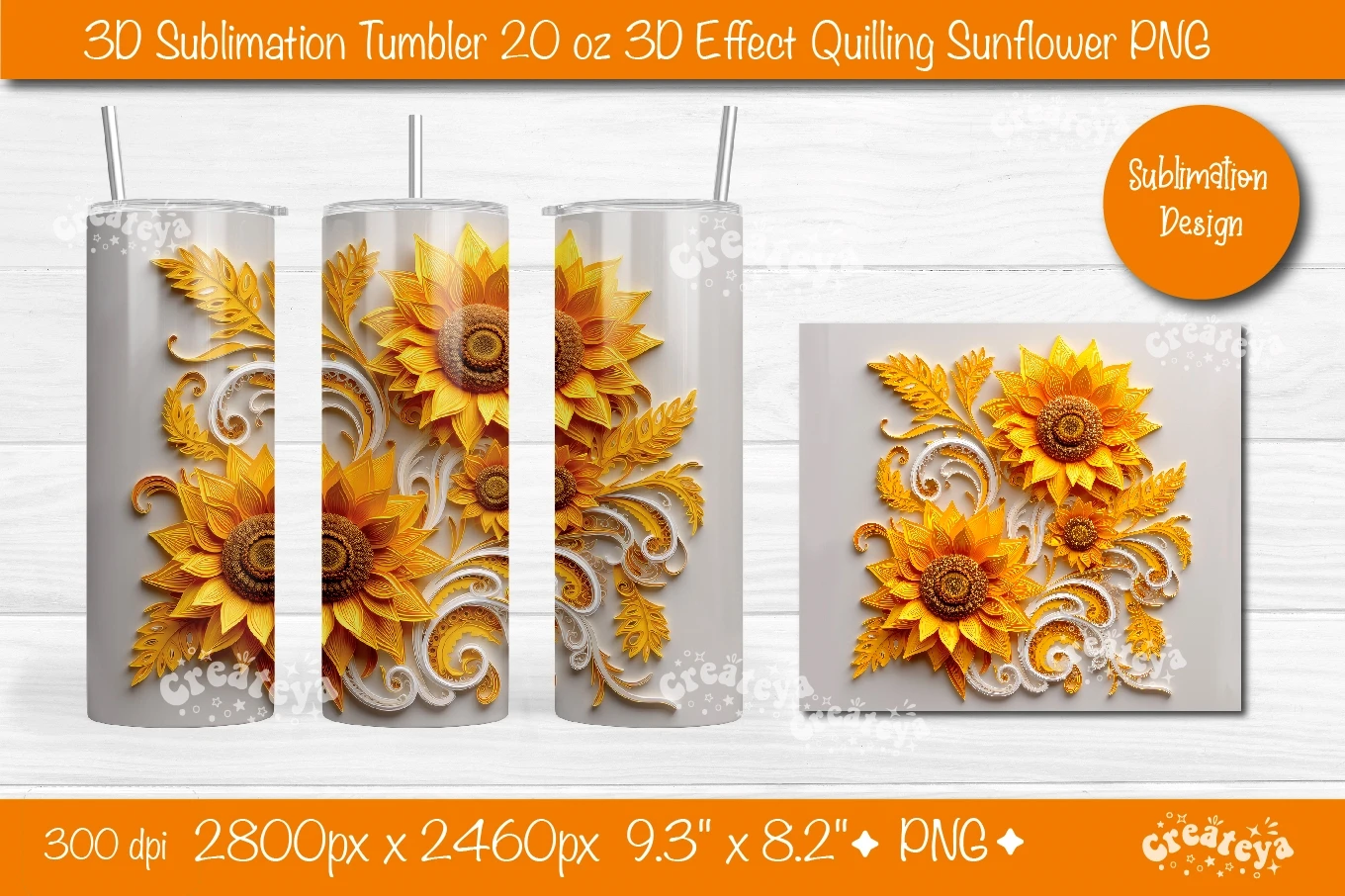 Use these 3d Sunflower sublimation tumbler designs to create tumblers for you and your friends.