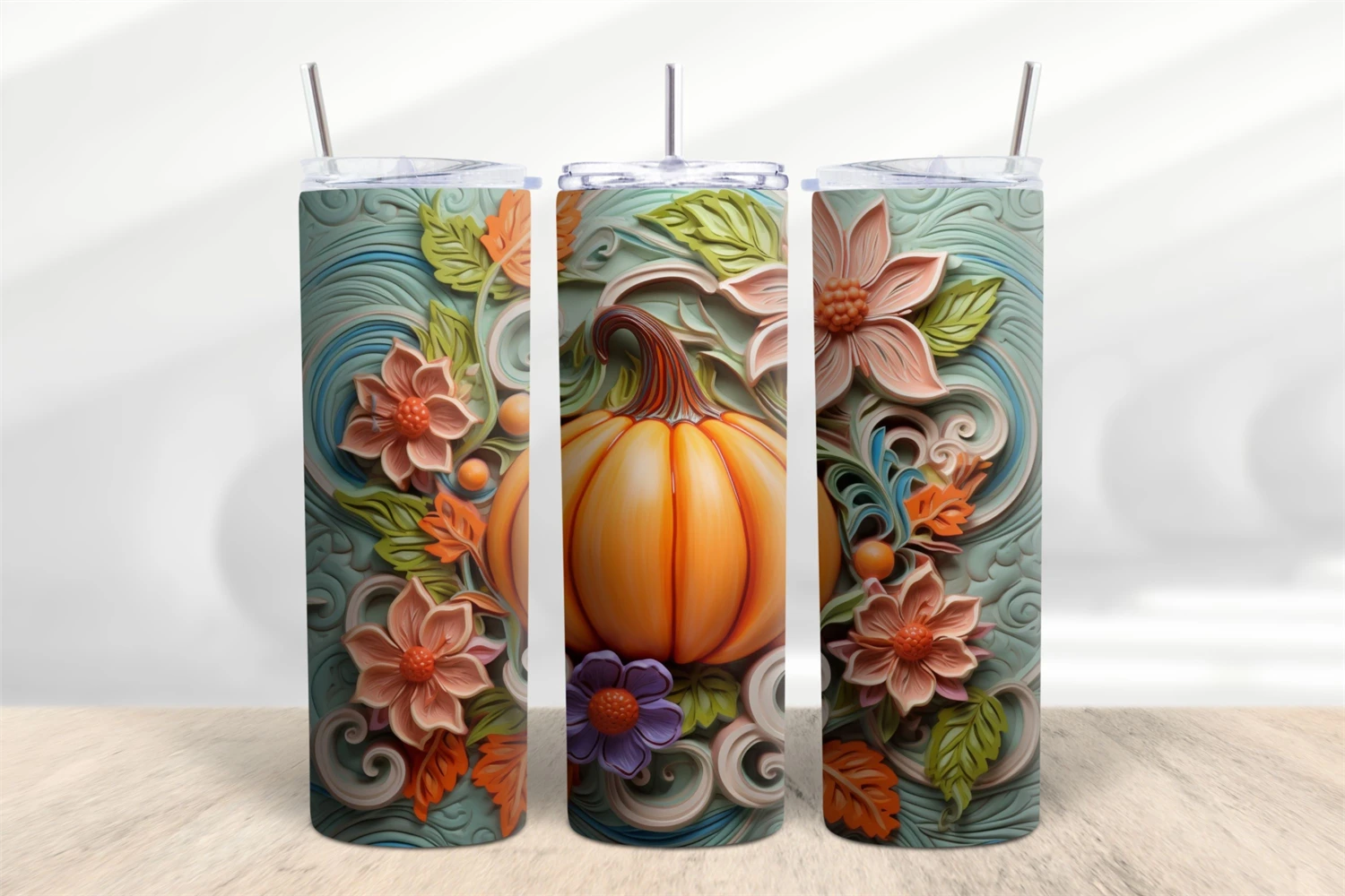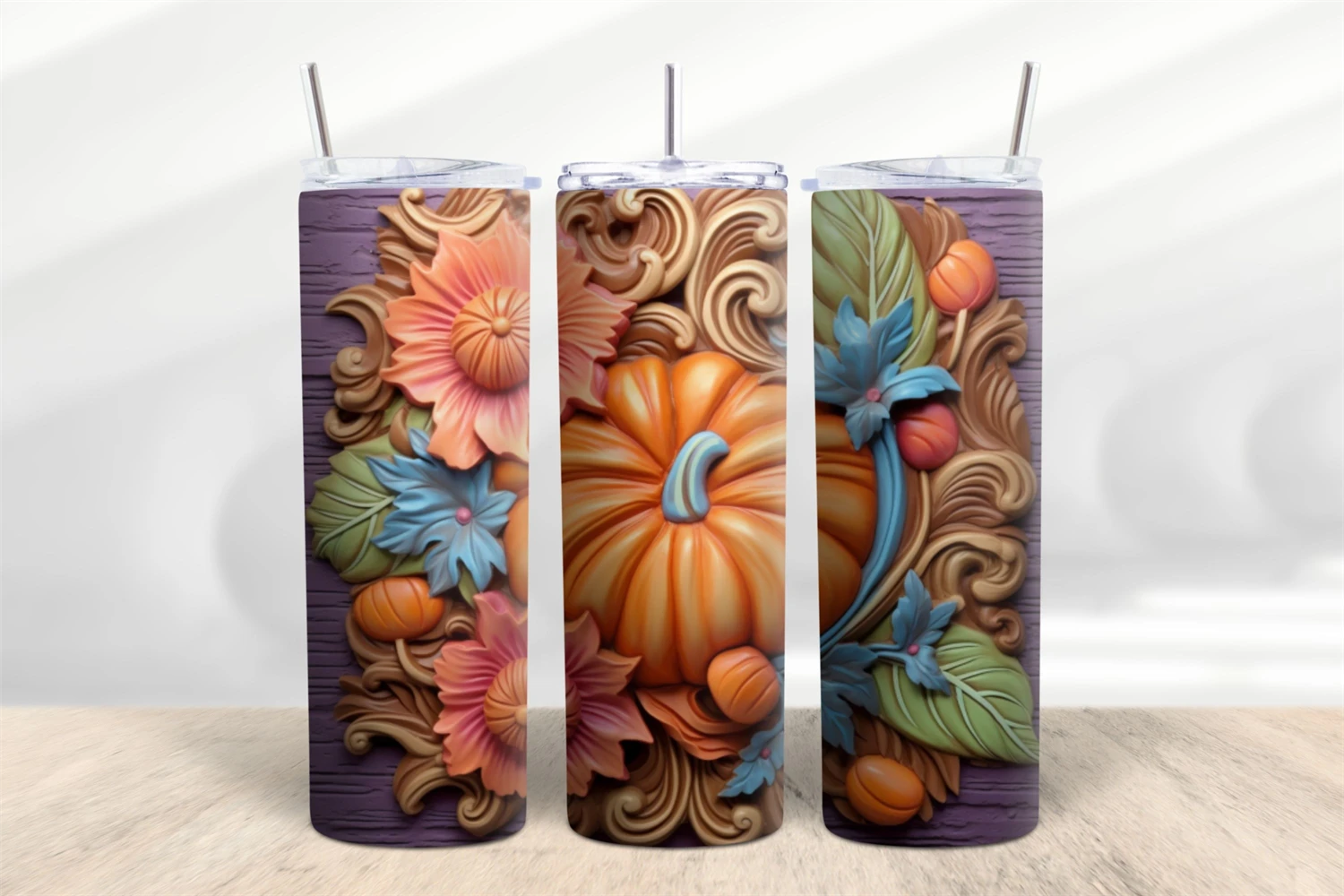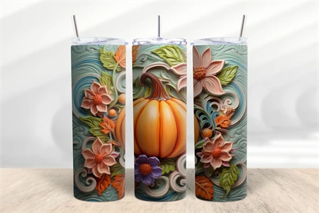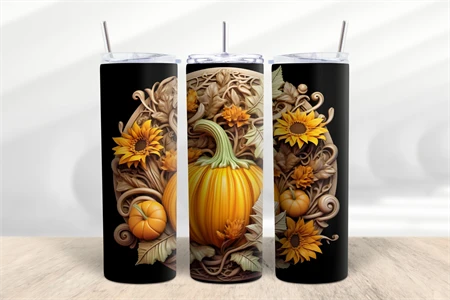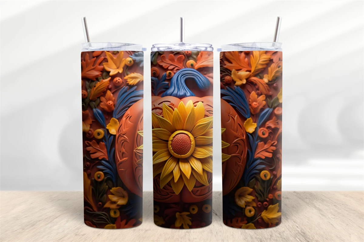 3D Tumbler Wrap Autumn Pumpkin 20oz Skinny Tumbler Sublimation Design.