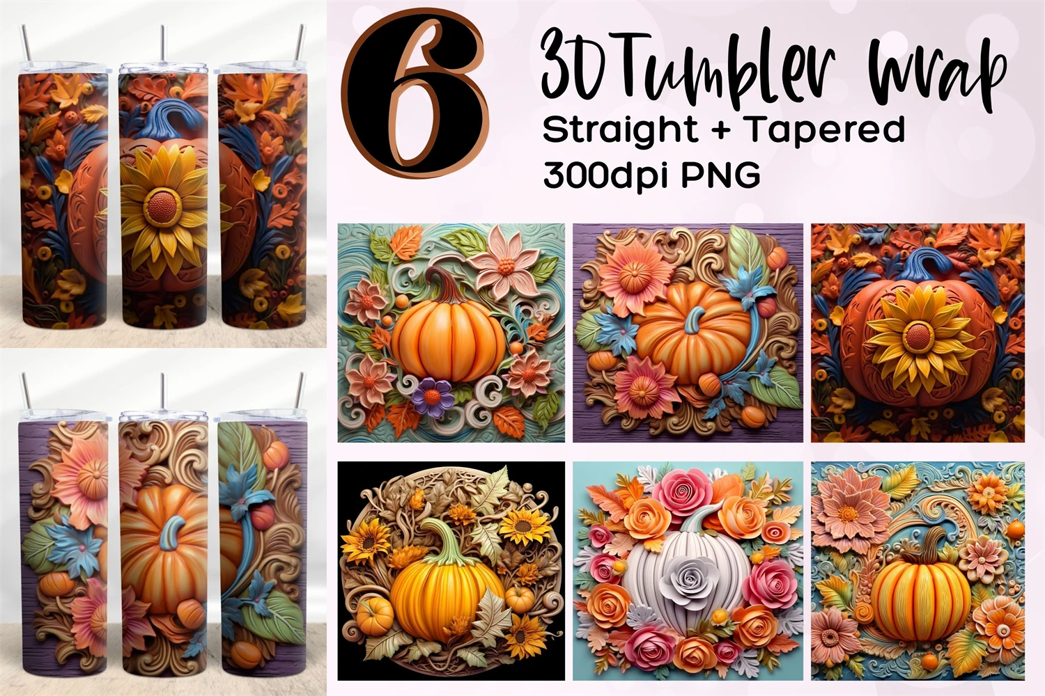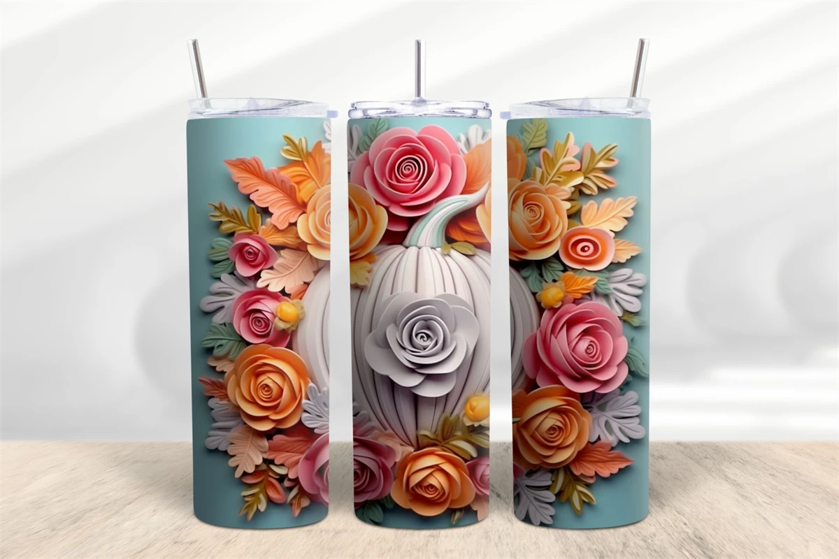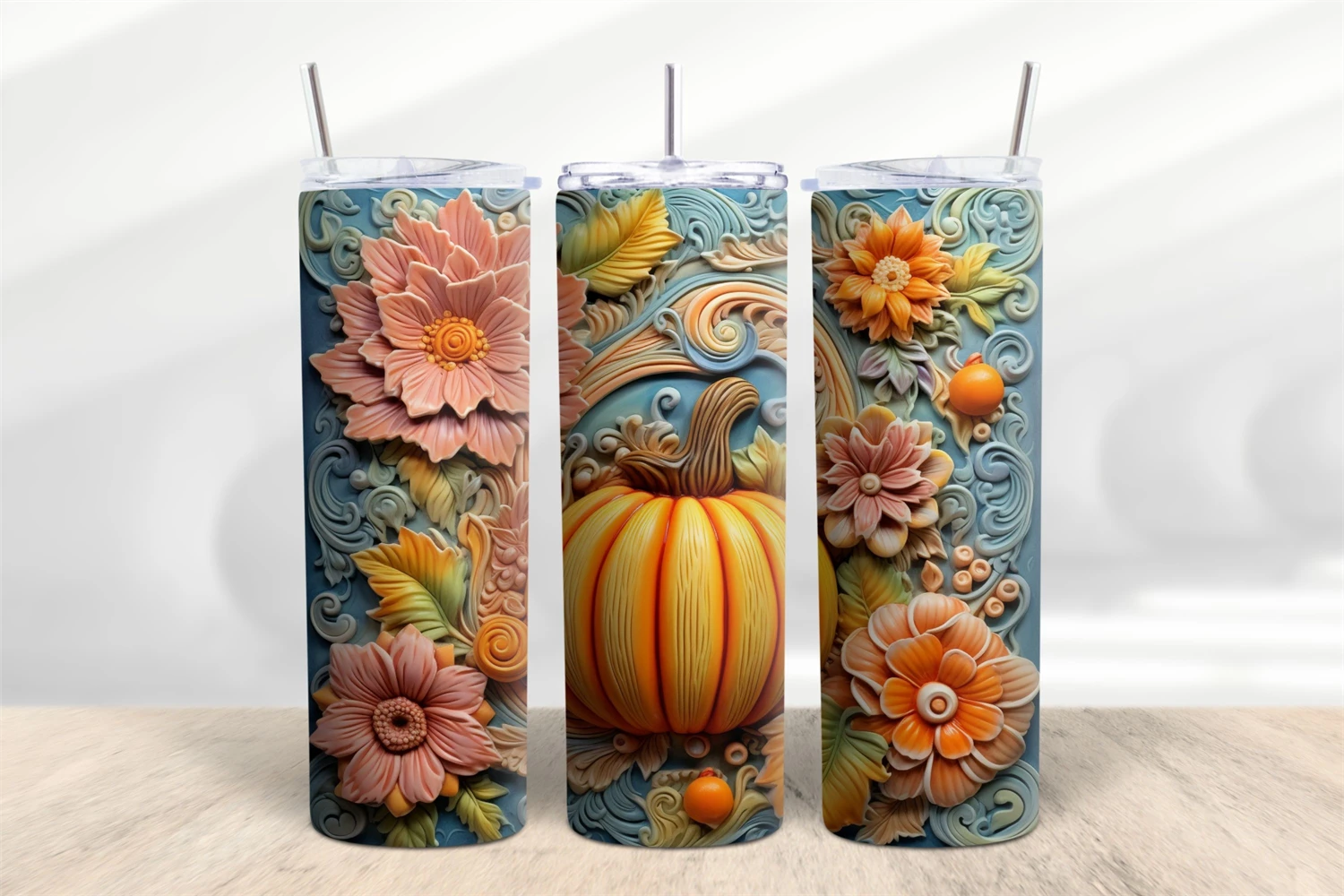 3D Tumbler Wrap Autumn Pumpkin 20oz Skinny Tumbler Sublimation Design.