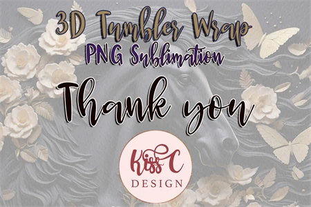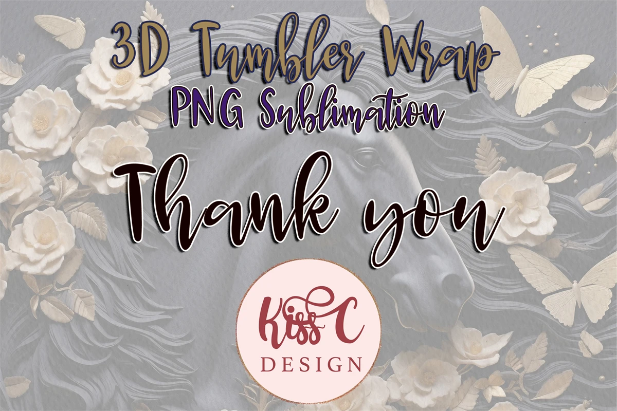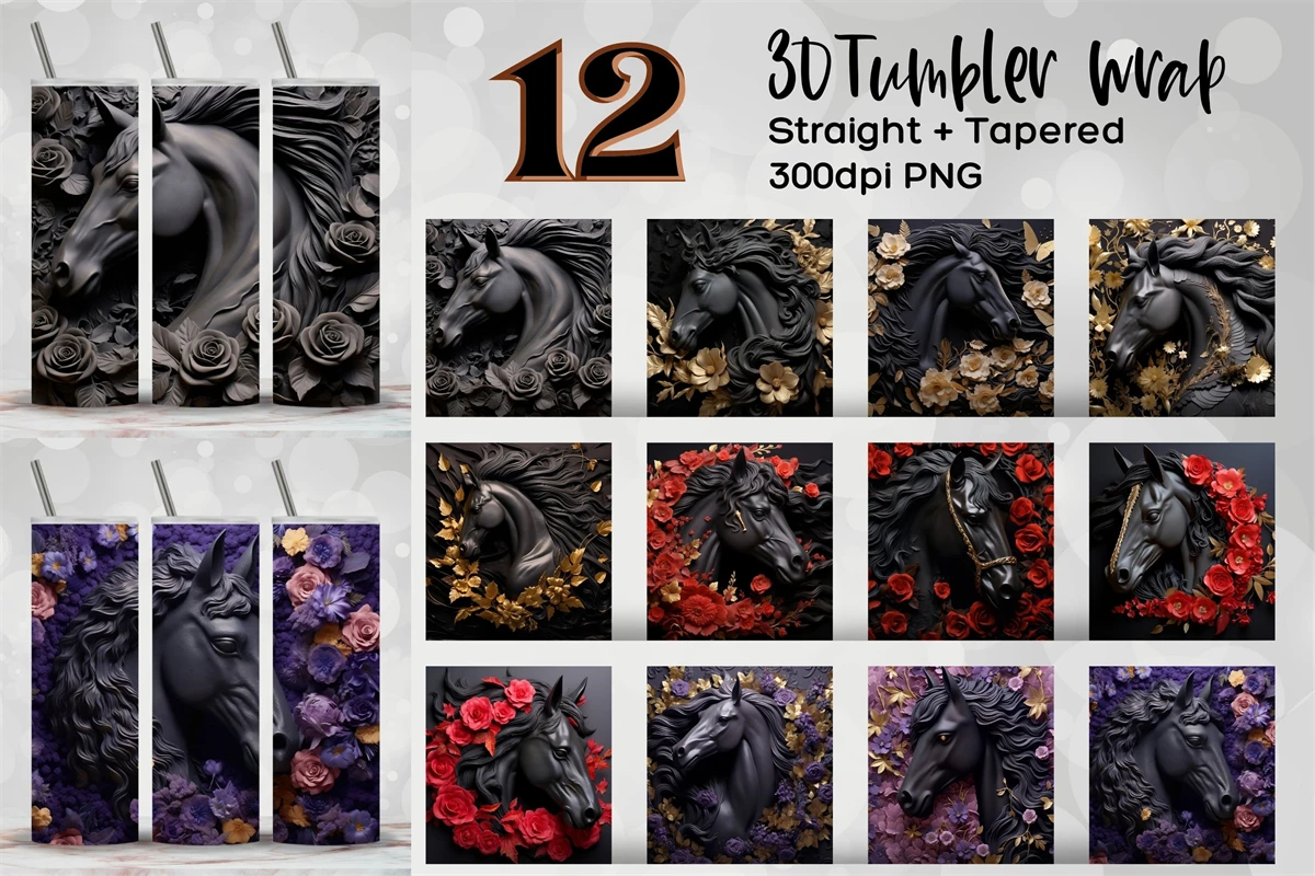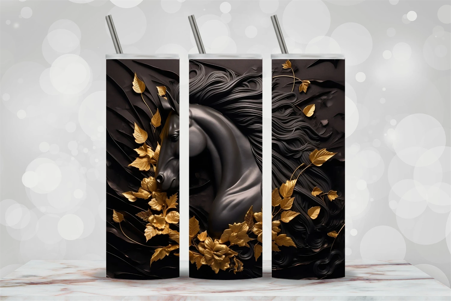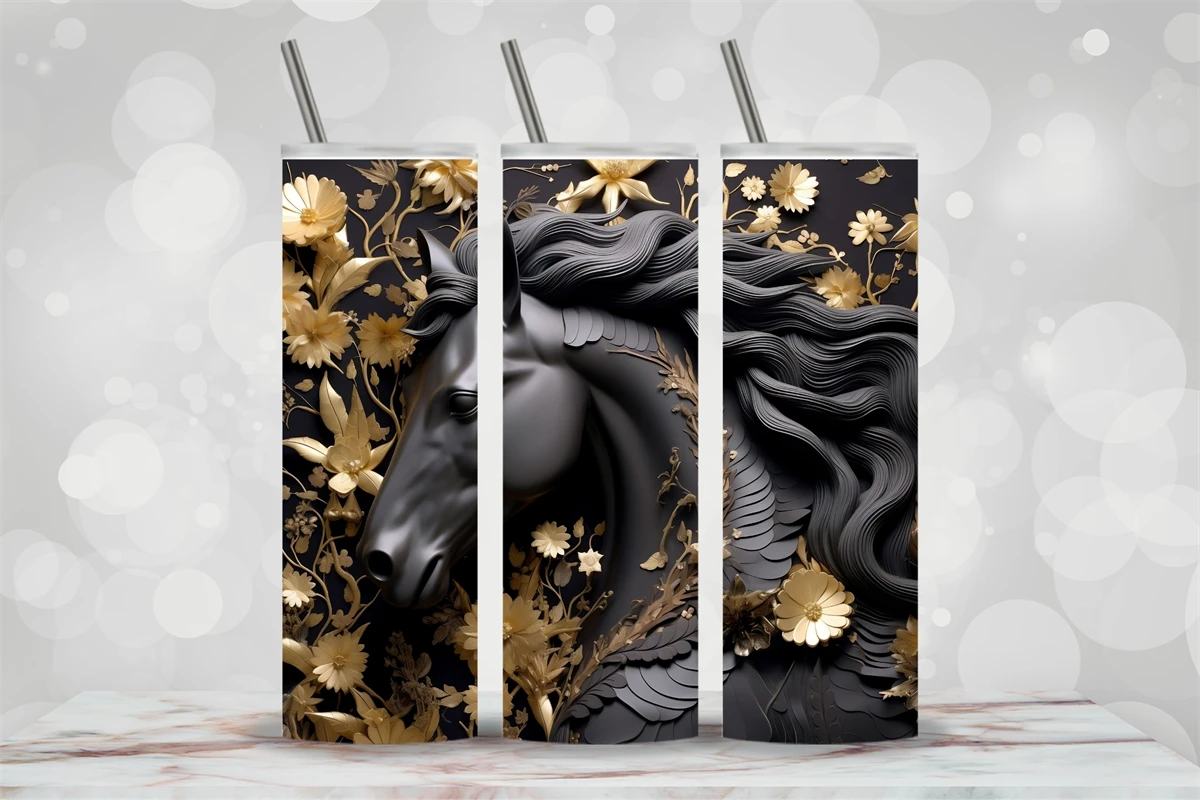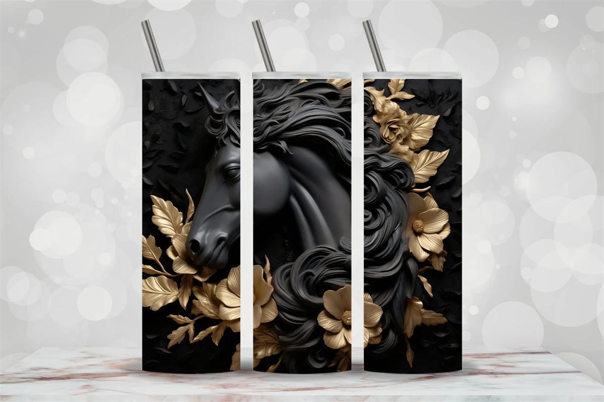 3D Tumbler Wrap Black Horse Flowers 20 oz Skinny Tumbler Sublimation Design.