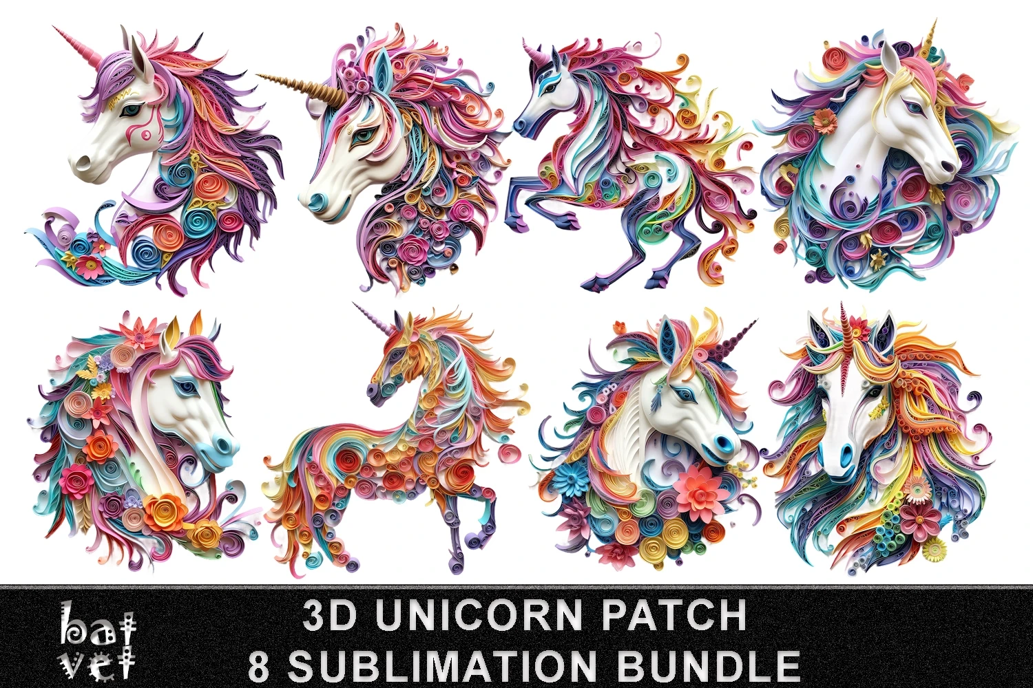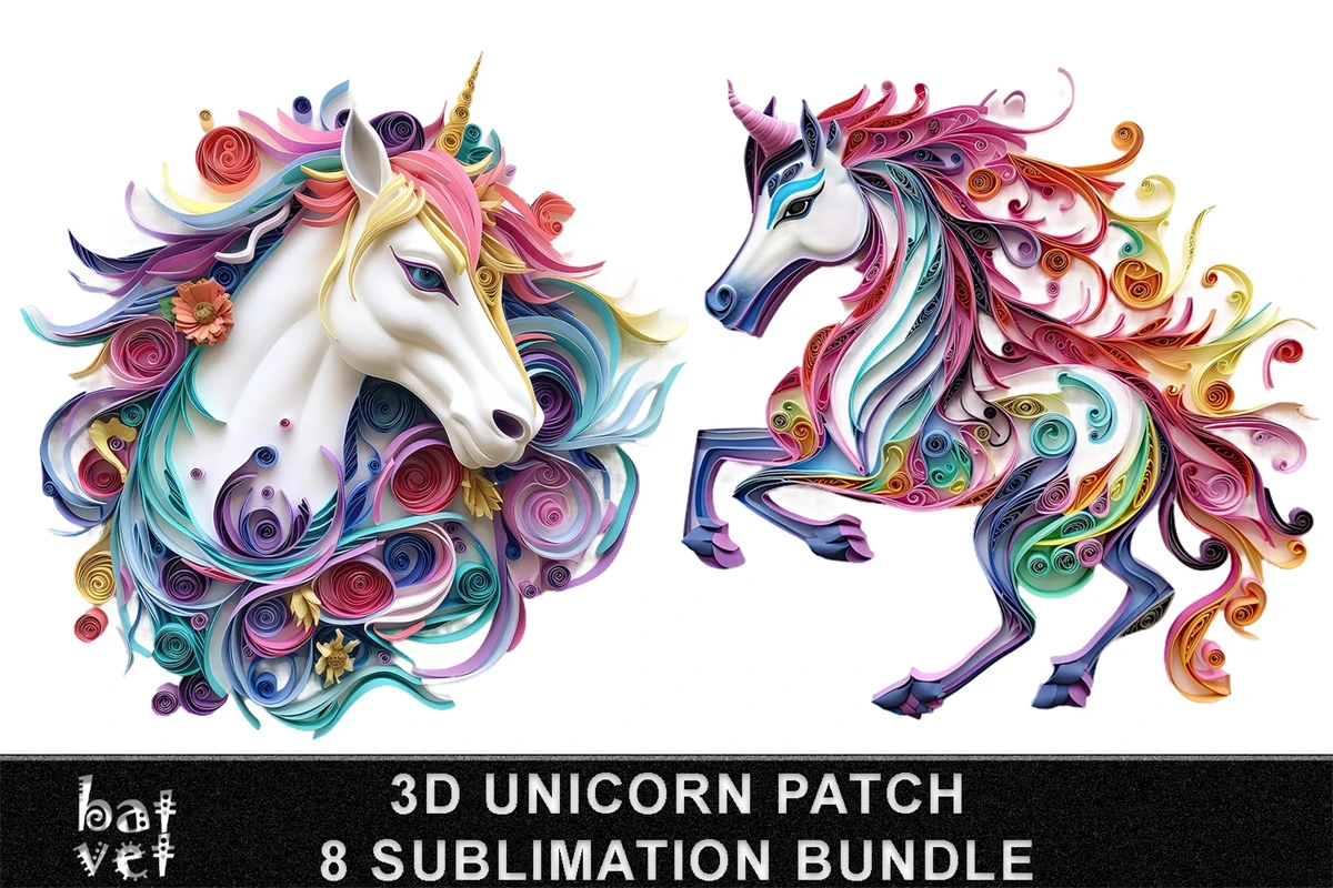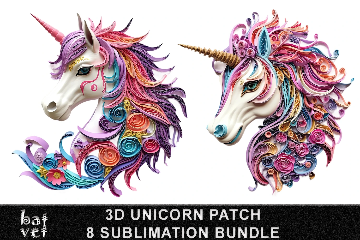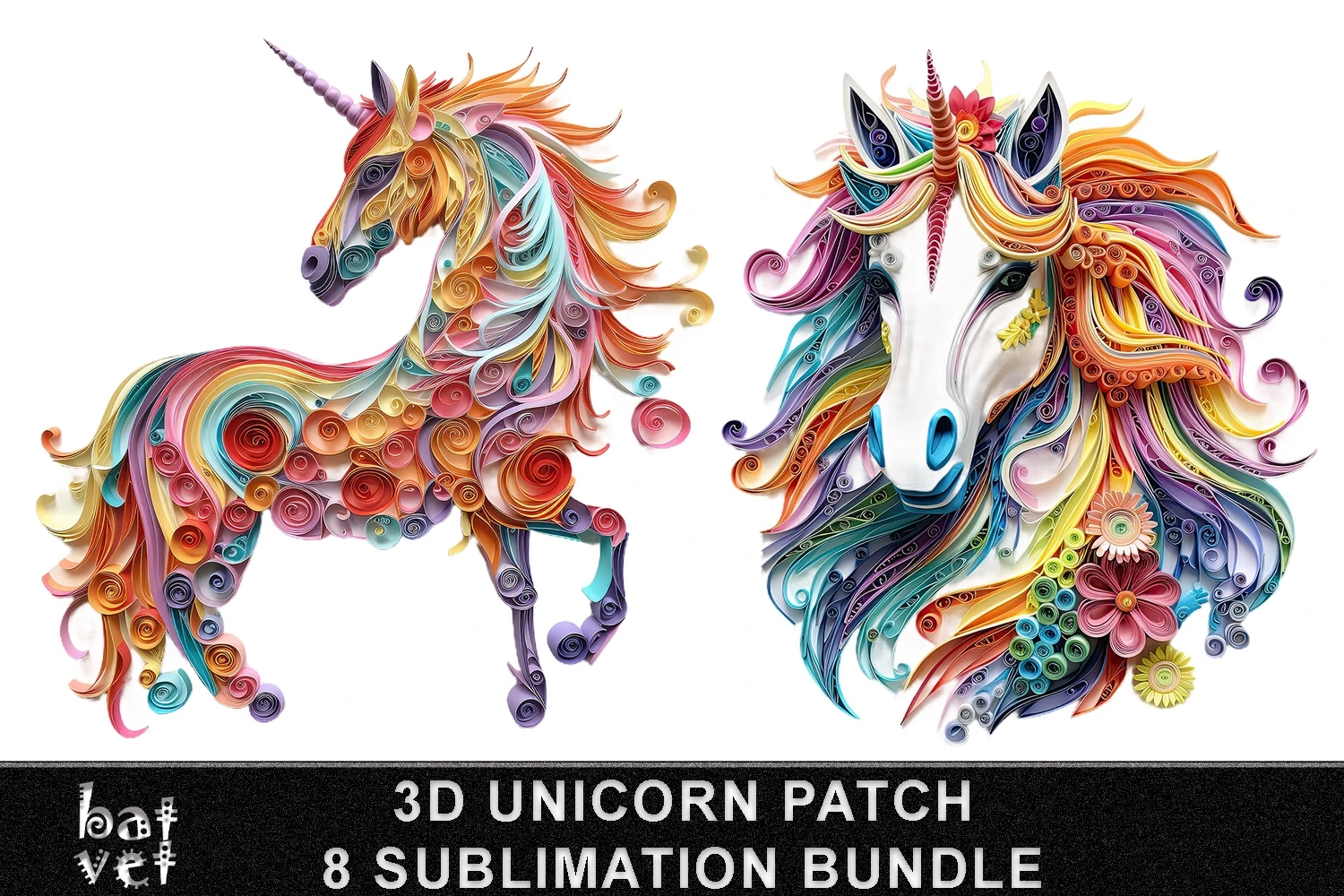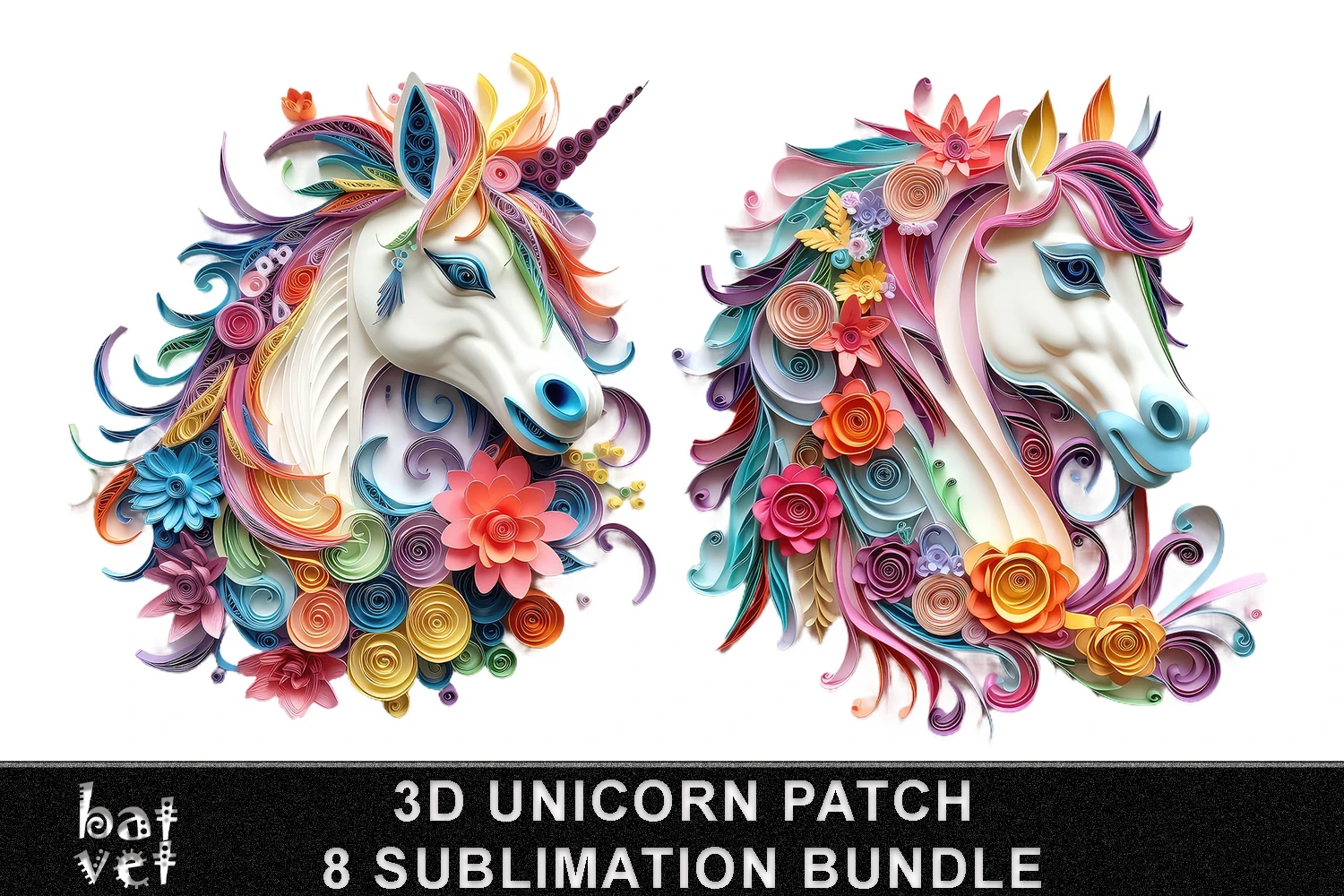 3D Unicorn Patch Bundle / Rainbow Unicorn Sublimation / Unicorn Quilt 8 PNG Bundle