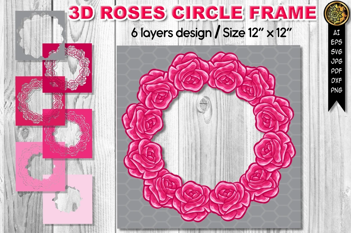 3D Rose Circle Frame Border Multi-Layered Design Flowers SVG Clipart Cut Files for your creative DIY projects and Home Decorations. Perfect for paper crafting, papercut, scrapbooking, card stock, home decor, wedding decor, and other DIY projects. Options are endless!