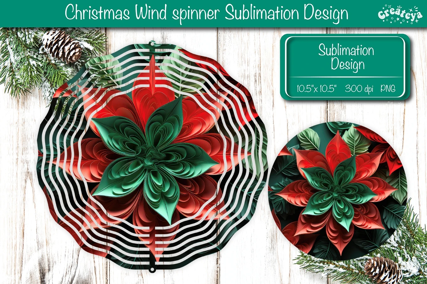 Round Christmas Wind Spinner with Christmas Flower, Christmas Poinsetta PNG. These Christmas designs of wind spinner bring a touch of snow-filled charm and a warm, fuzzy feeling to your home decor.