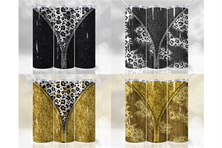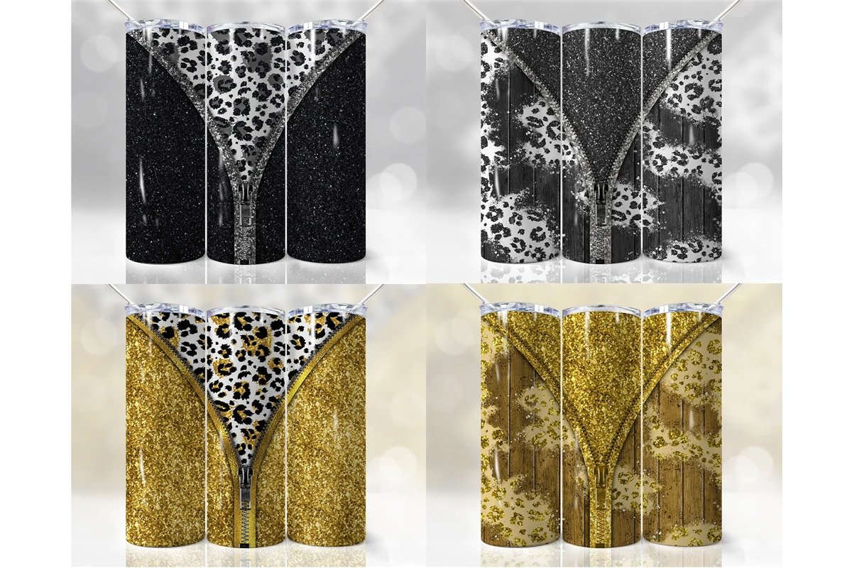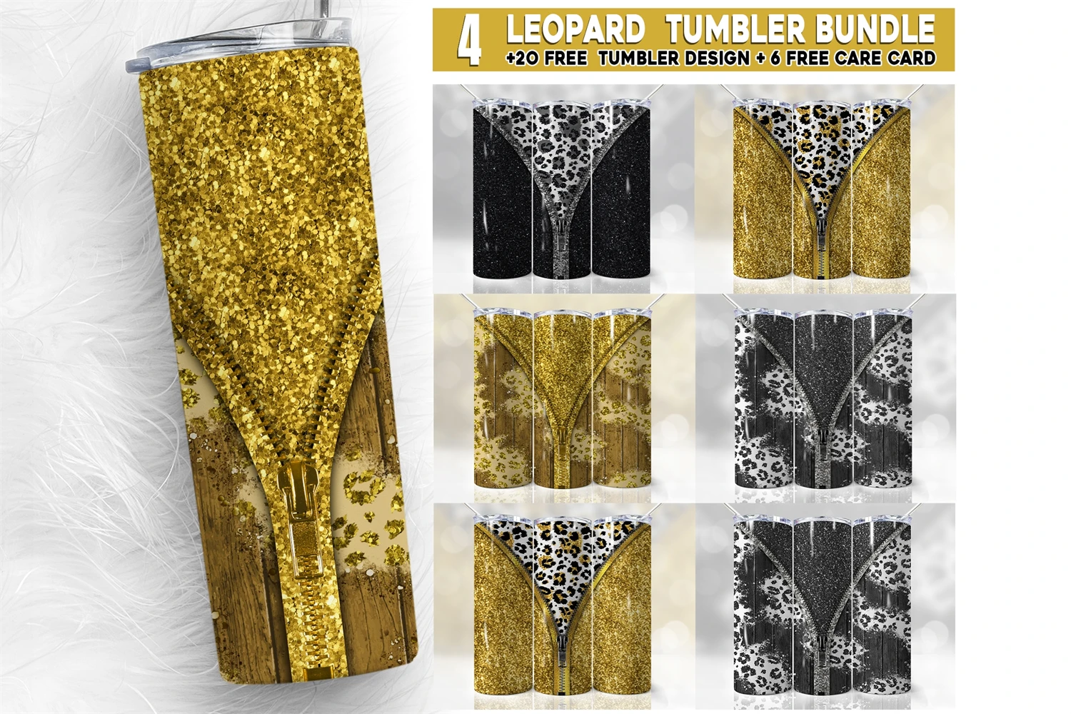 4 Glitter Leopard Bundle, 20oz Skinny Tumbler Wrap Png