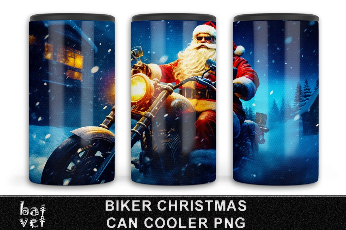 Can Cooler PNG, Biker Santa, Biker Xmas, Christmas Eve Sublimation for Men.