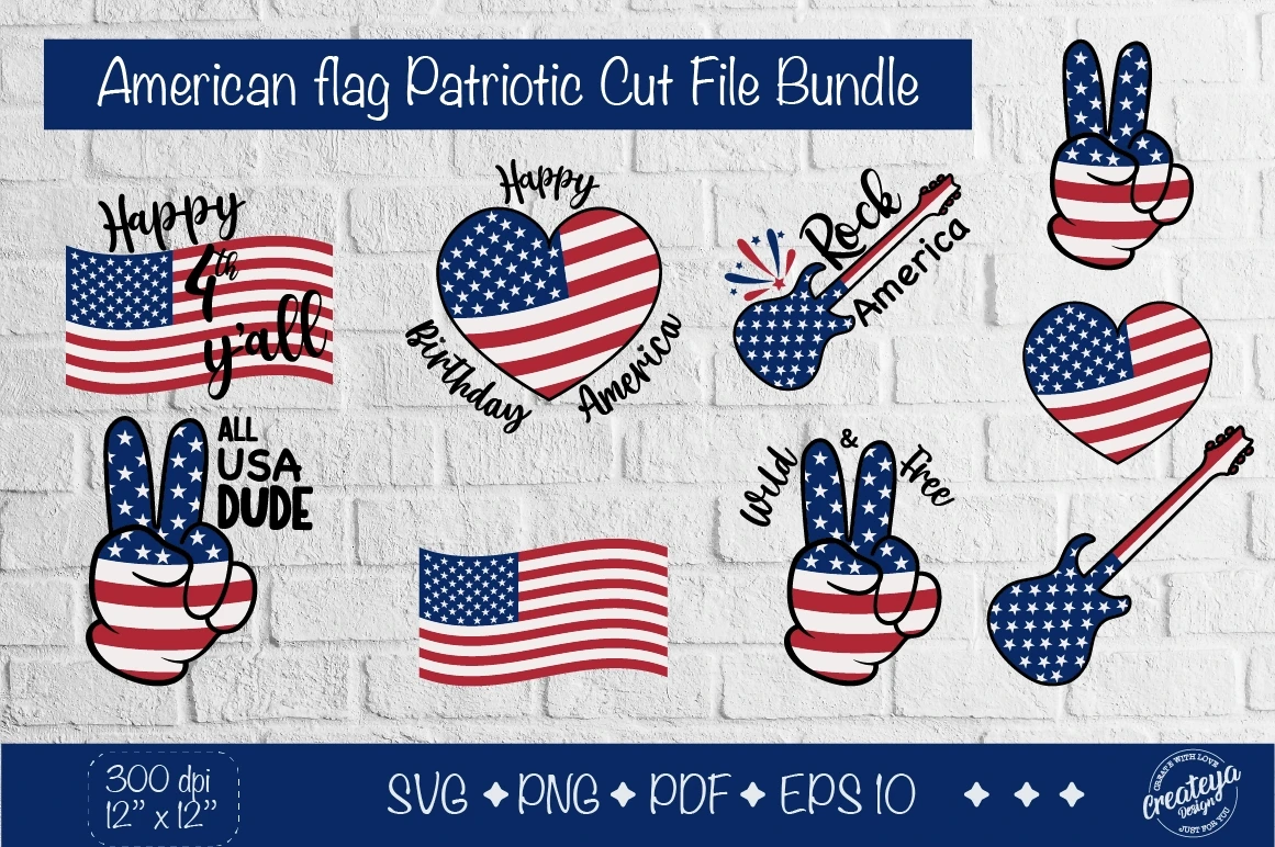 4 of July bundle svg with Heart flag and American flag svg with Patriotic quotes svg is great for tumblers and mugs, t-shirts, bags, tote bag, cards, and many more products.