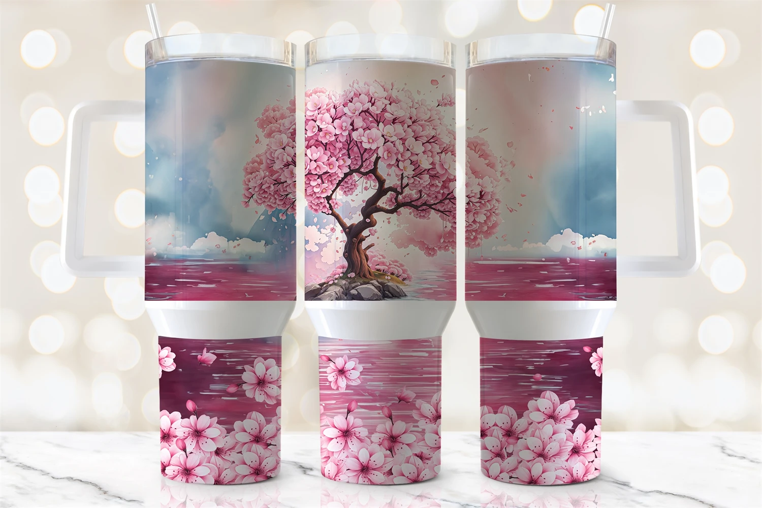 40oz 3D Cherry Blossom Tree Quencher Tumbler Wrap, Cherry