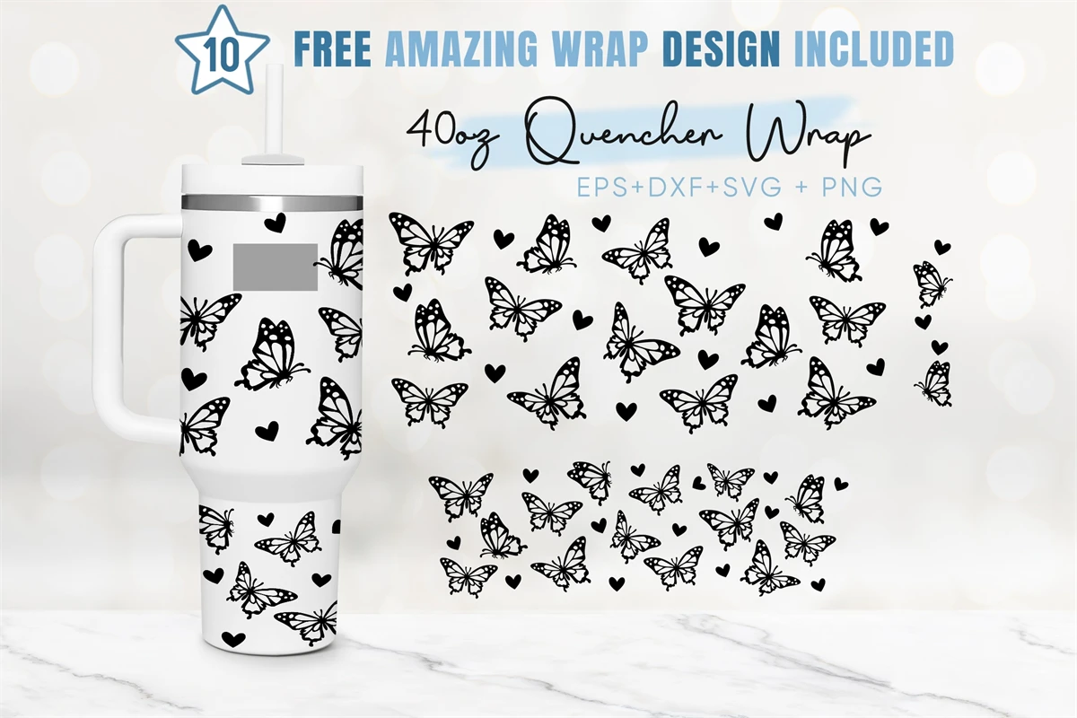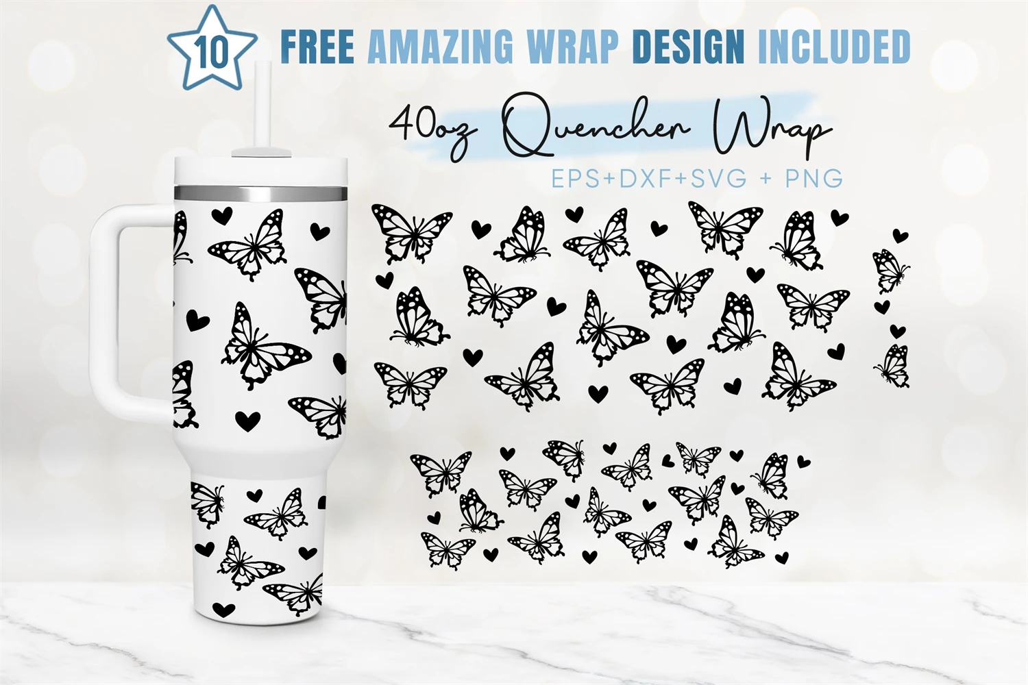 40oz Butterfly Quencher Tumbler, Butterflies Svg, Heart