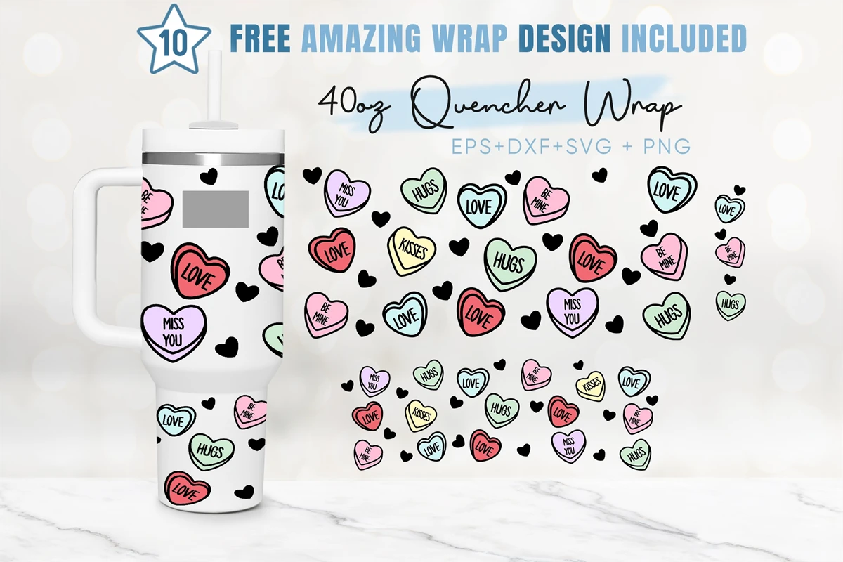 40oz Candy Heart Quencher Tumbler, Happy Valentine's Day