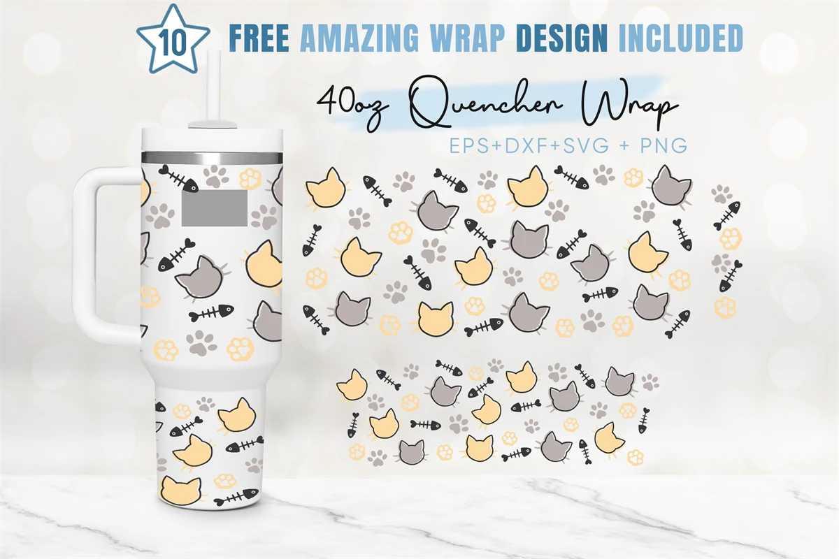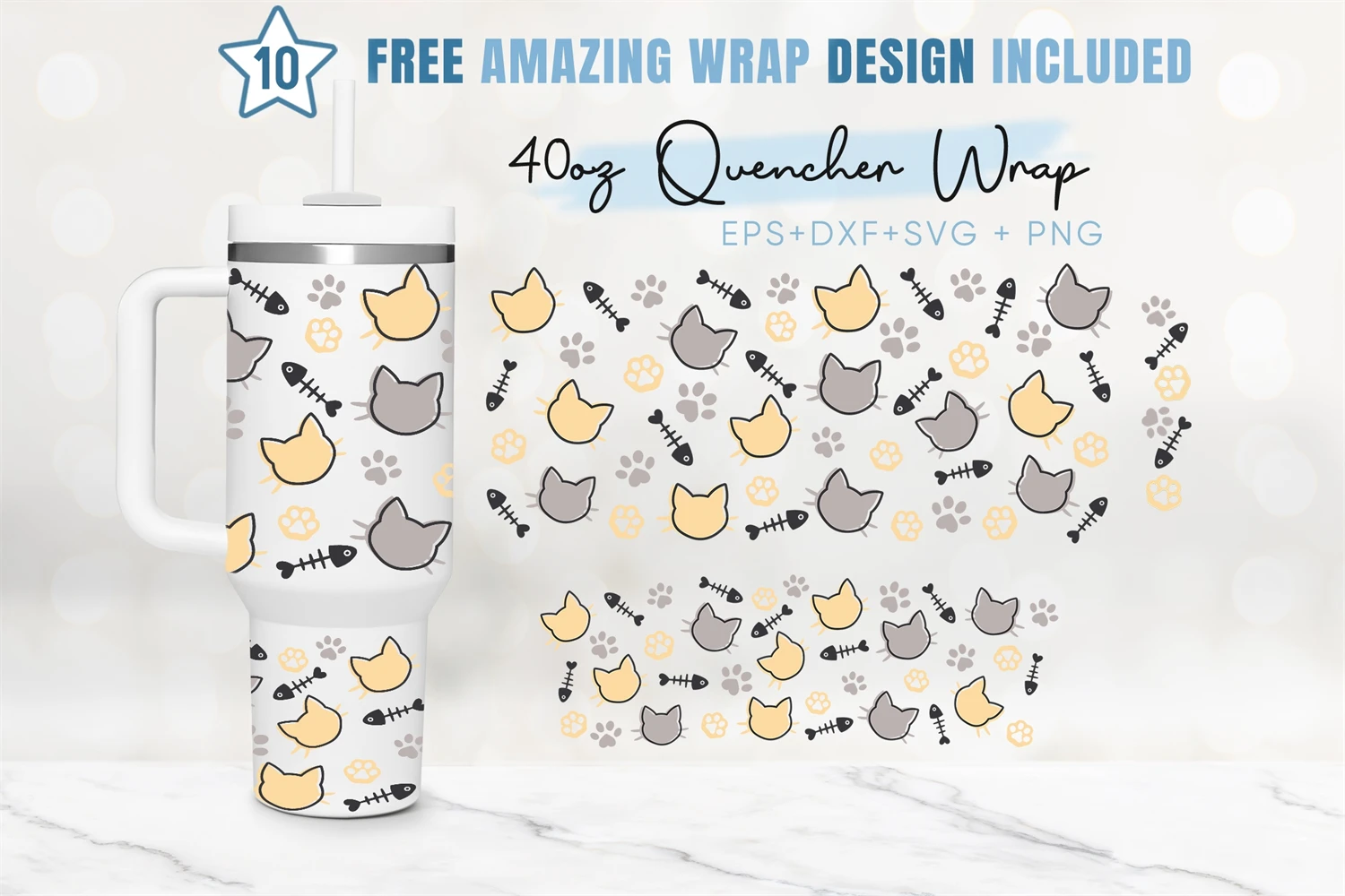 40oz Cat Quencher Tumbler, Cute Cat, Cat Lover, Fish Bone