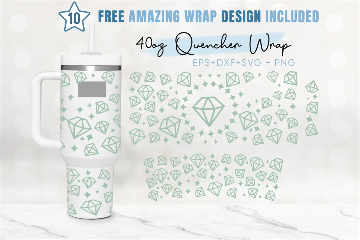 40oz Diamond Quencher Tumbler, Jewel Svg, Wedding Svg