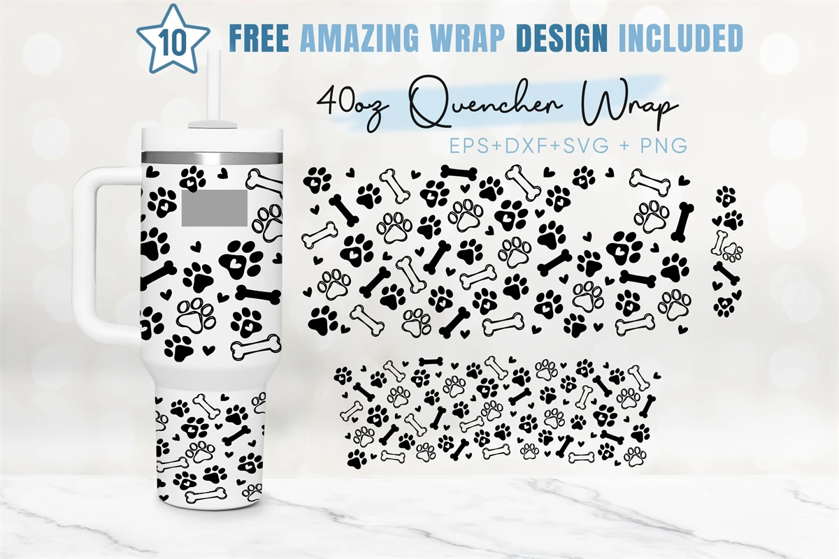 40oz Dog Paw Quencher Tumbler, Dog Lover, Dog Mom