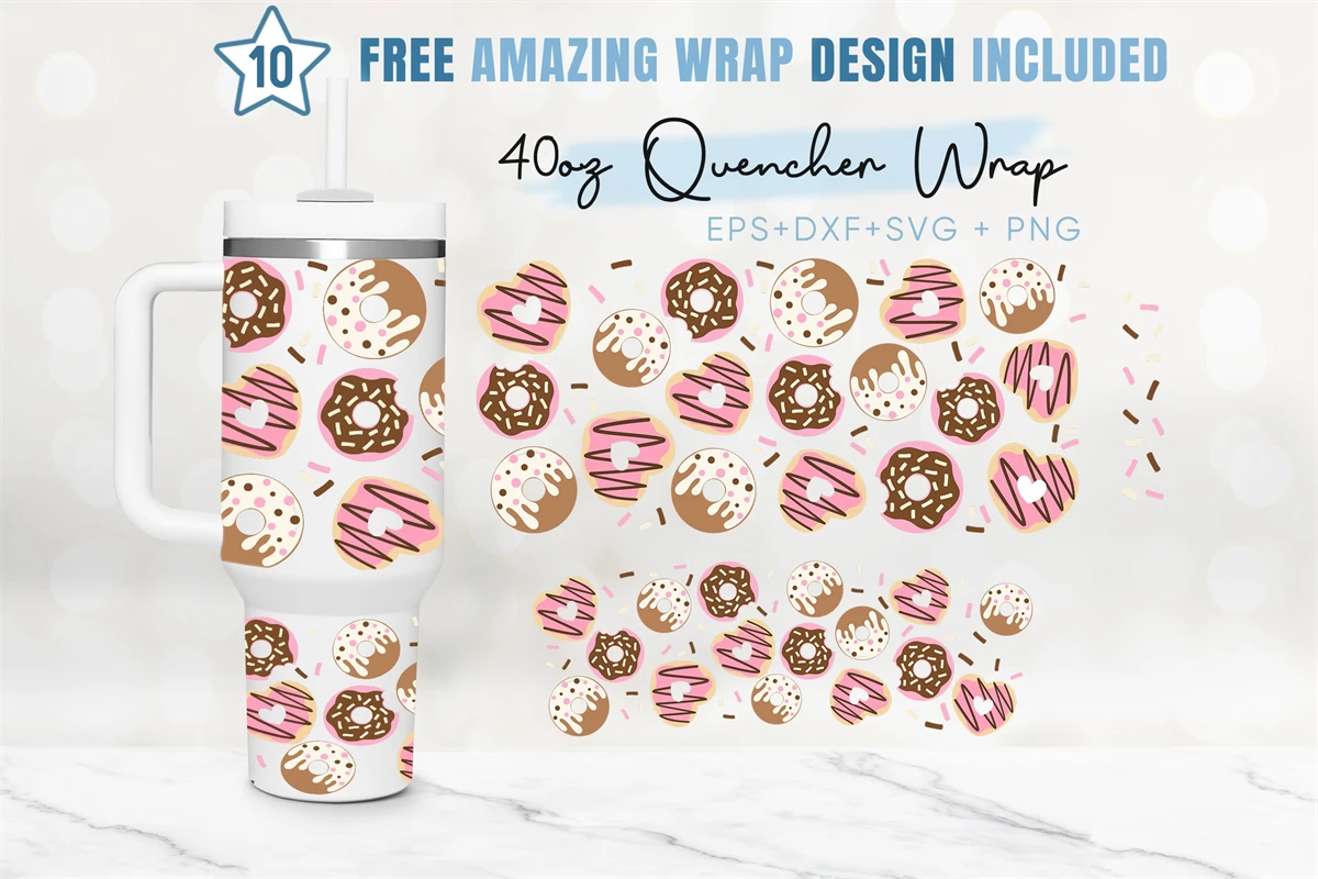 40oz Donut Quencher Tumbler, Doughnut Svg, Baking Svg