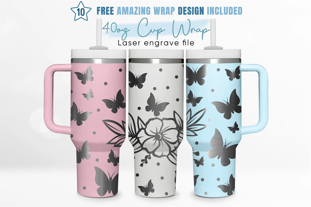 40oz Engraved Tumbler Wrap Butterfly With Flowers