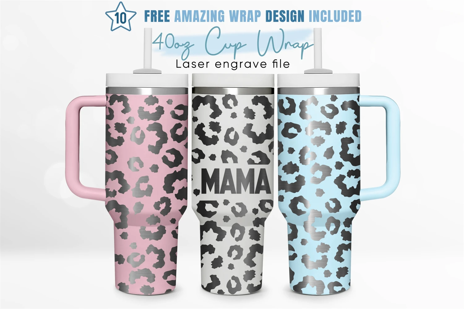 40oz Engraved Tumbler Wrap Leopard Mama, Animal Print