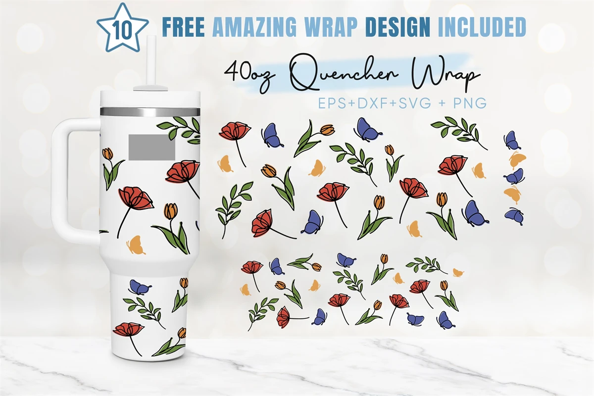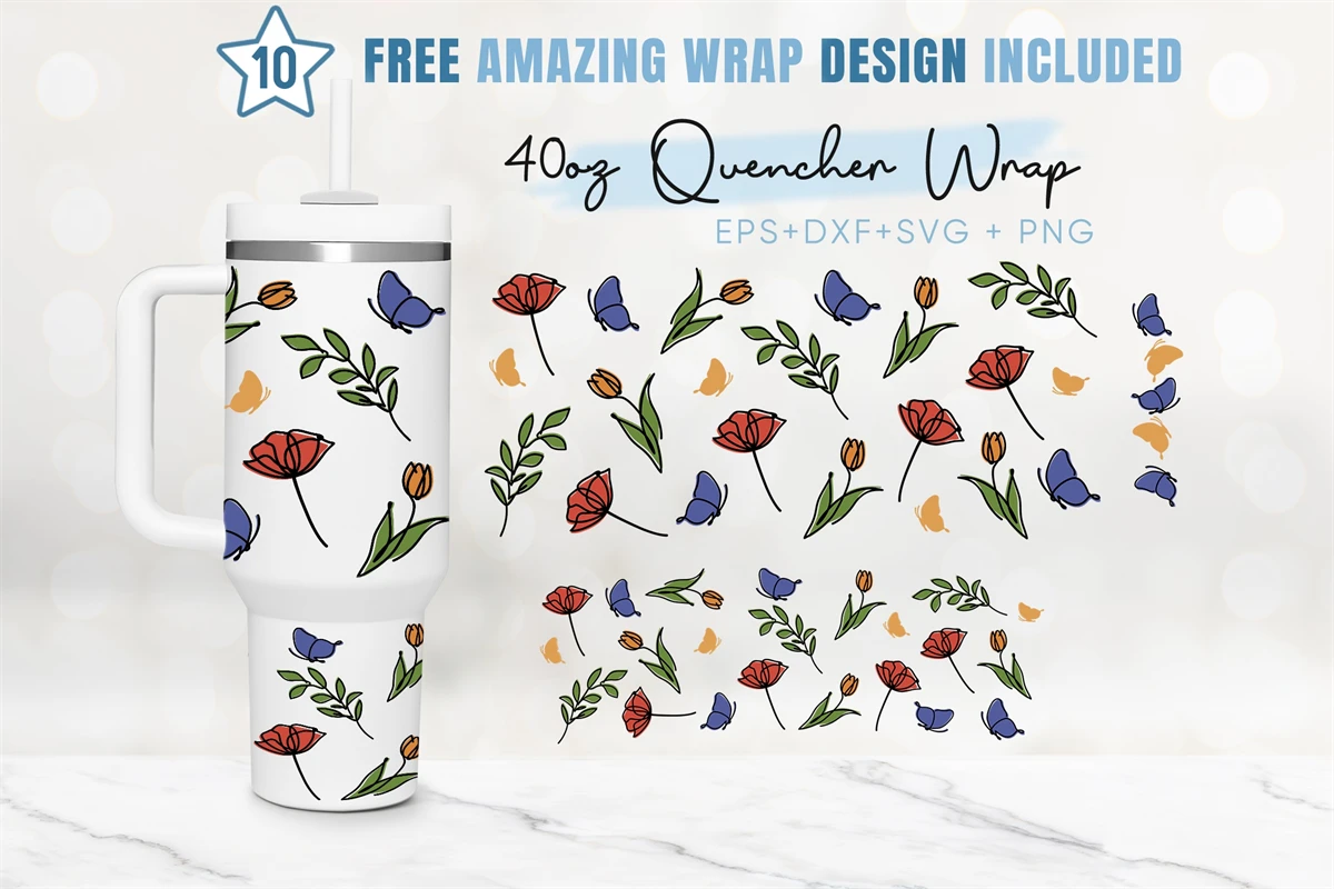 40oz Flower Quencher Tumbler, Floral Svg, Spring