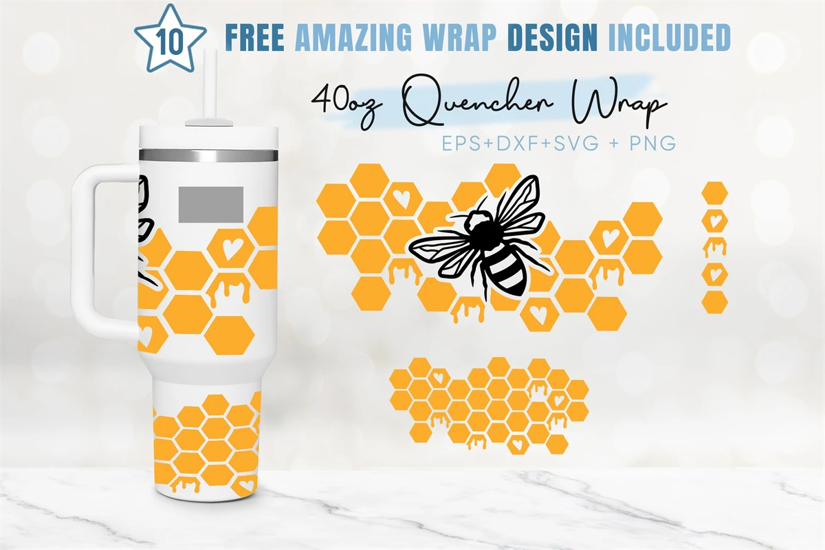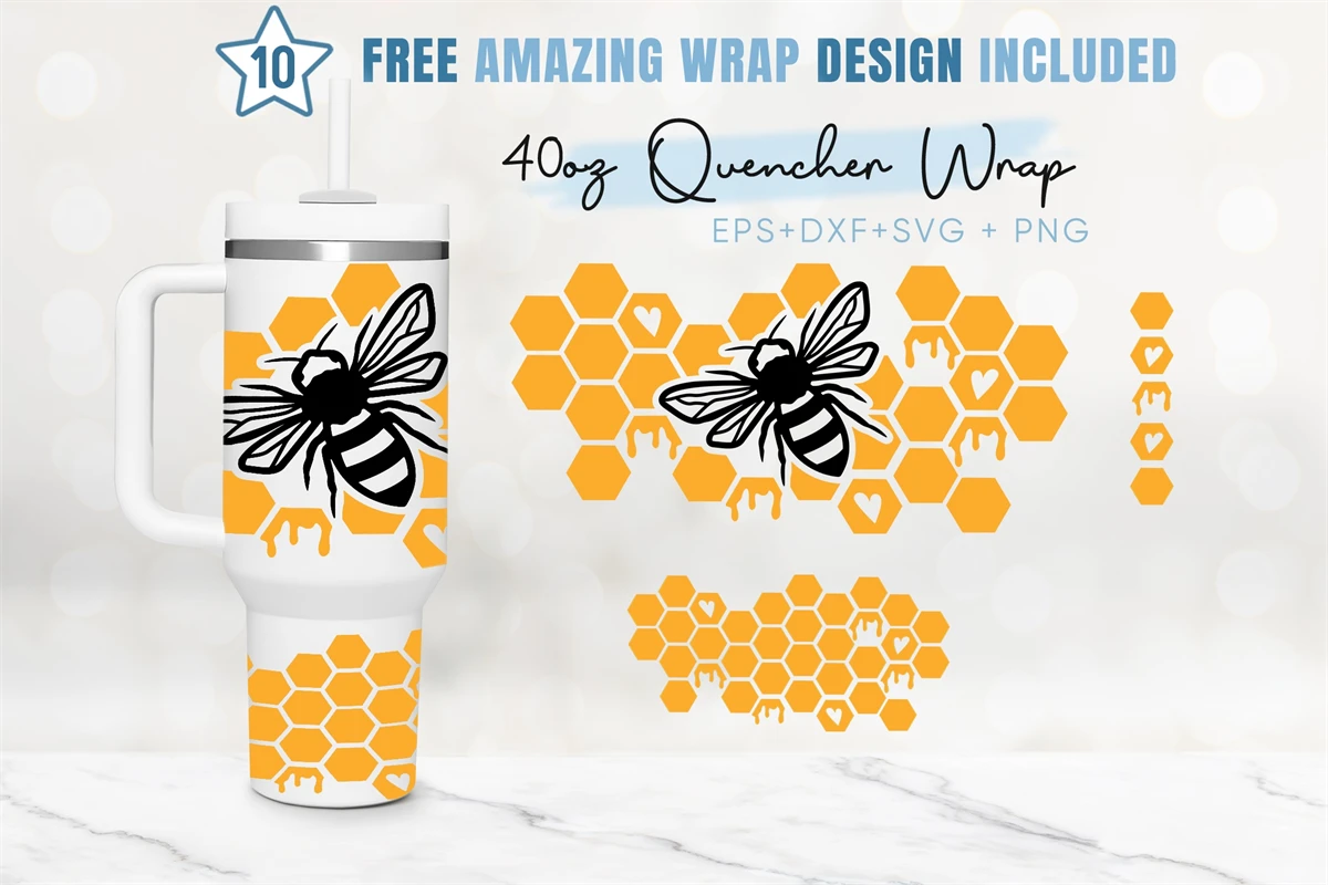 40oz Honey Bee Quencher Tumbler, Honeycomb, Floral