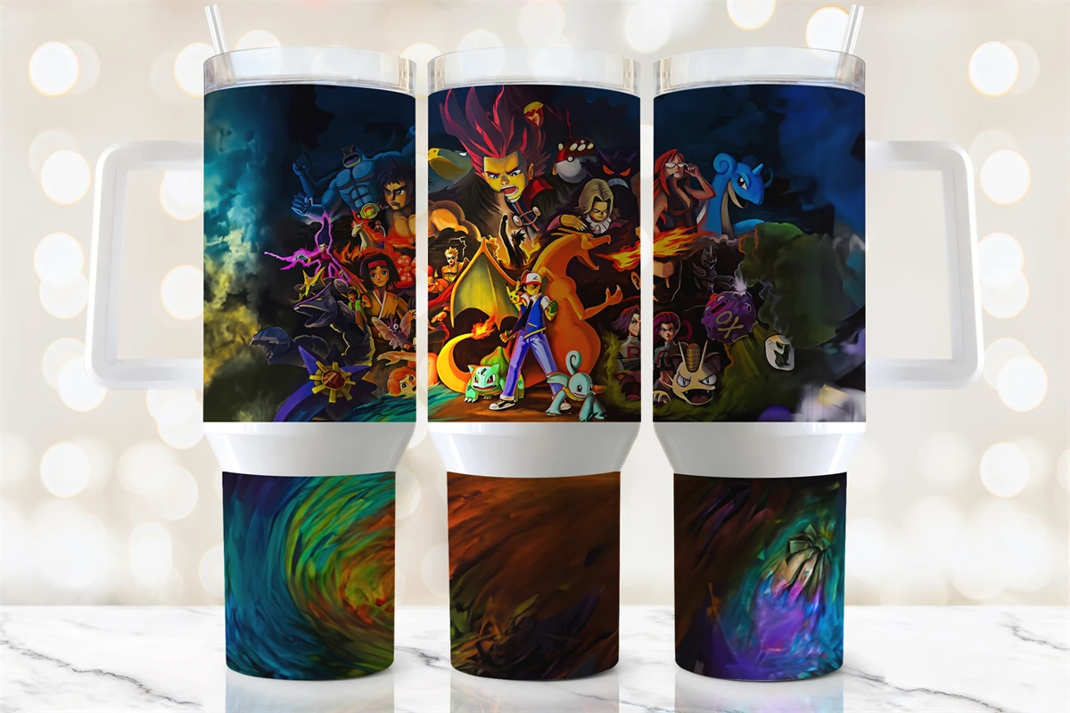 40oz Pokemon Quencher Tumbler Wrap Png, Cartoon, Anime, Game