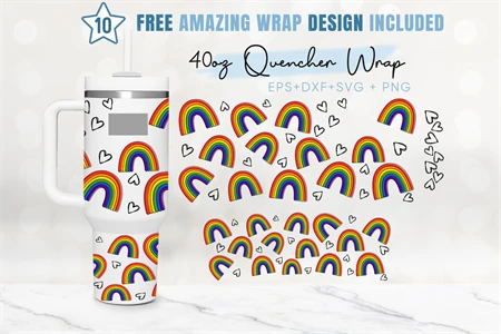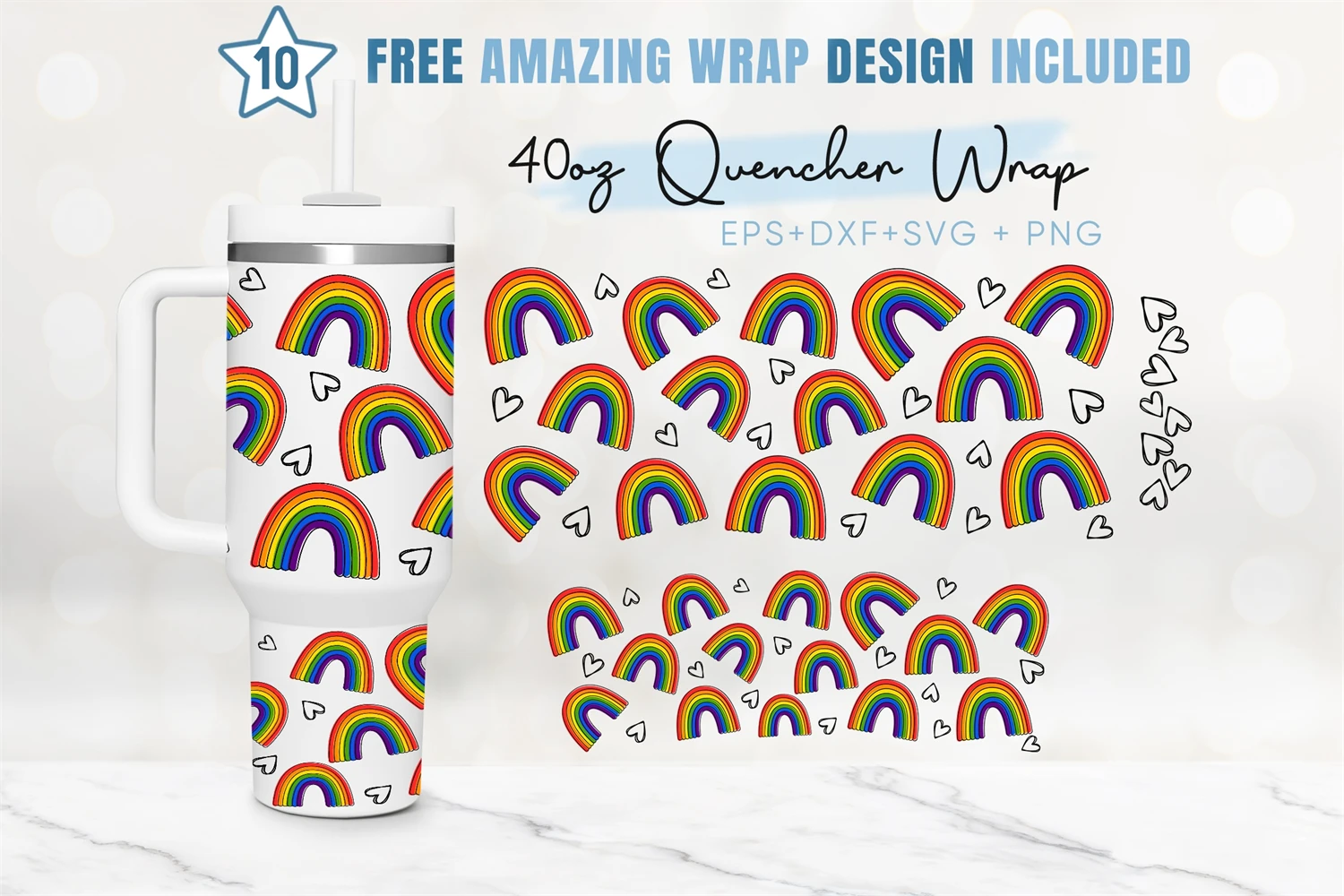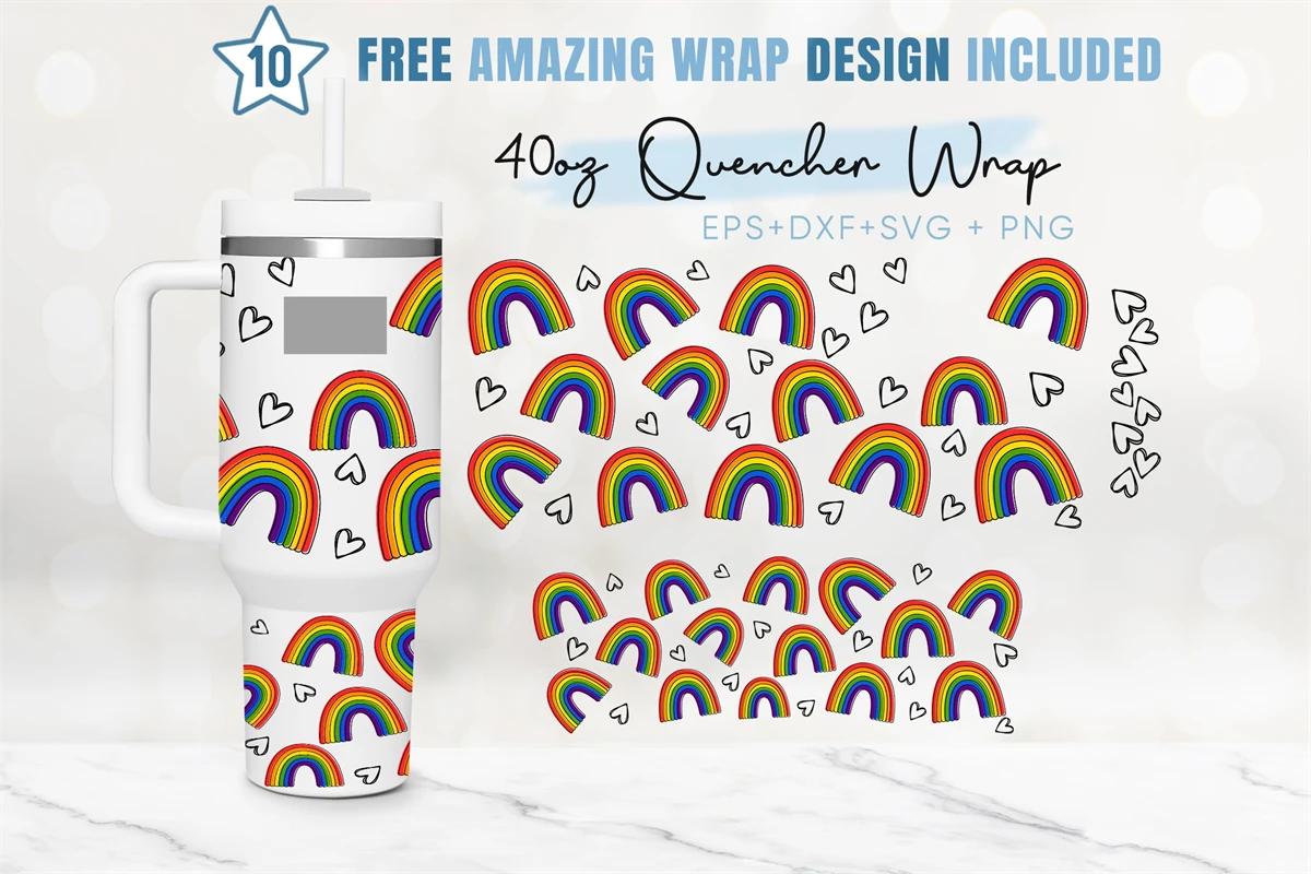 40oz Rainbow Quencher Tumbler, Boho, Heart