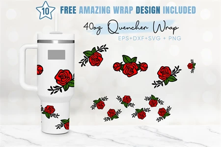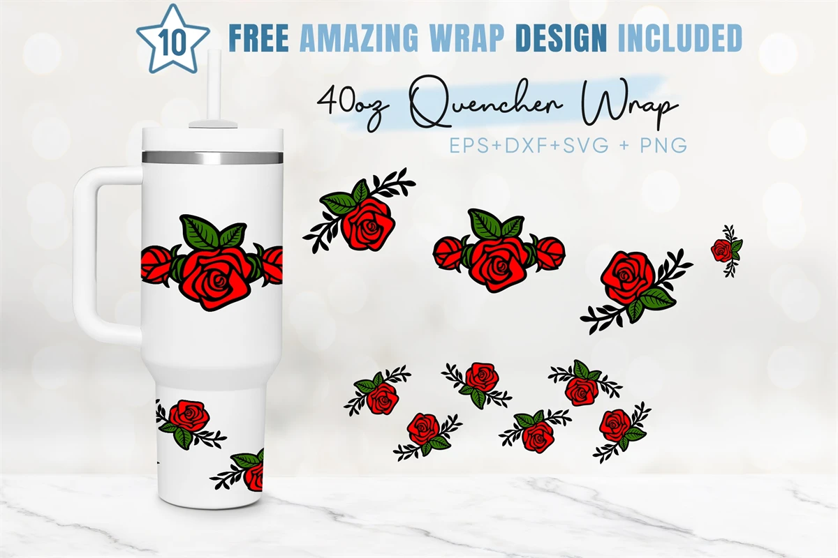 40oz Rose Quencher Tumbler, Roses Svg, Flower Svg, Floral