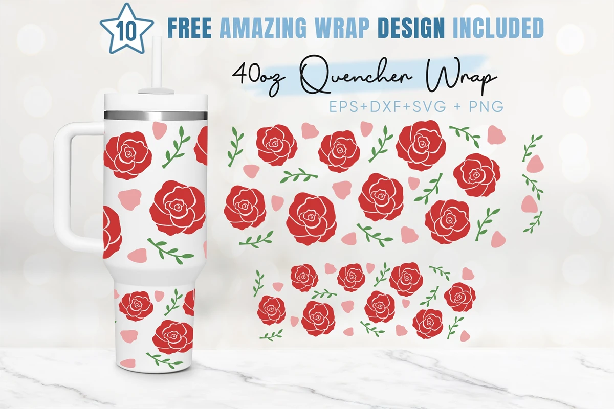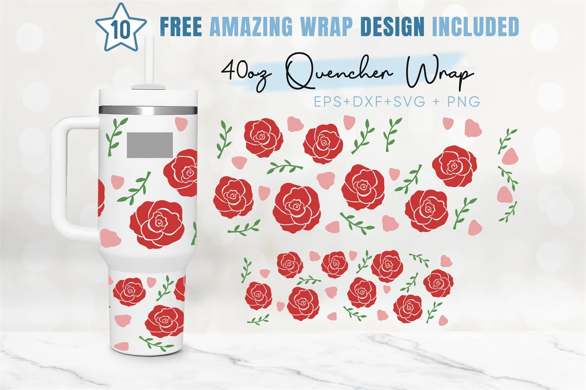 40oz Rose Quencher Tumbler, Roses Svg, Flower Svg, Floral