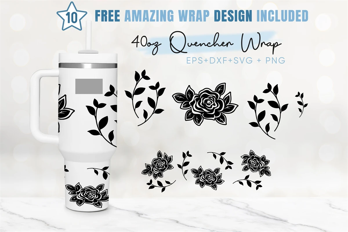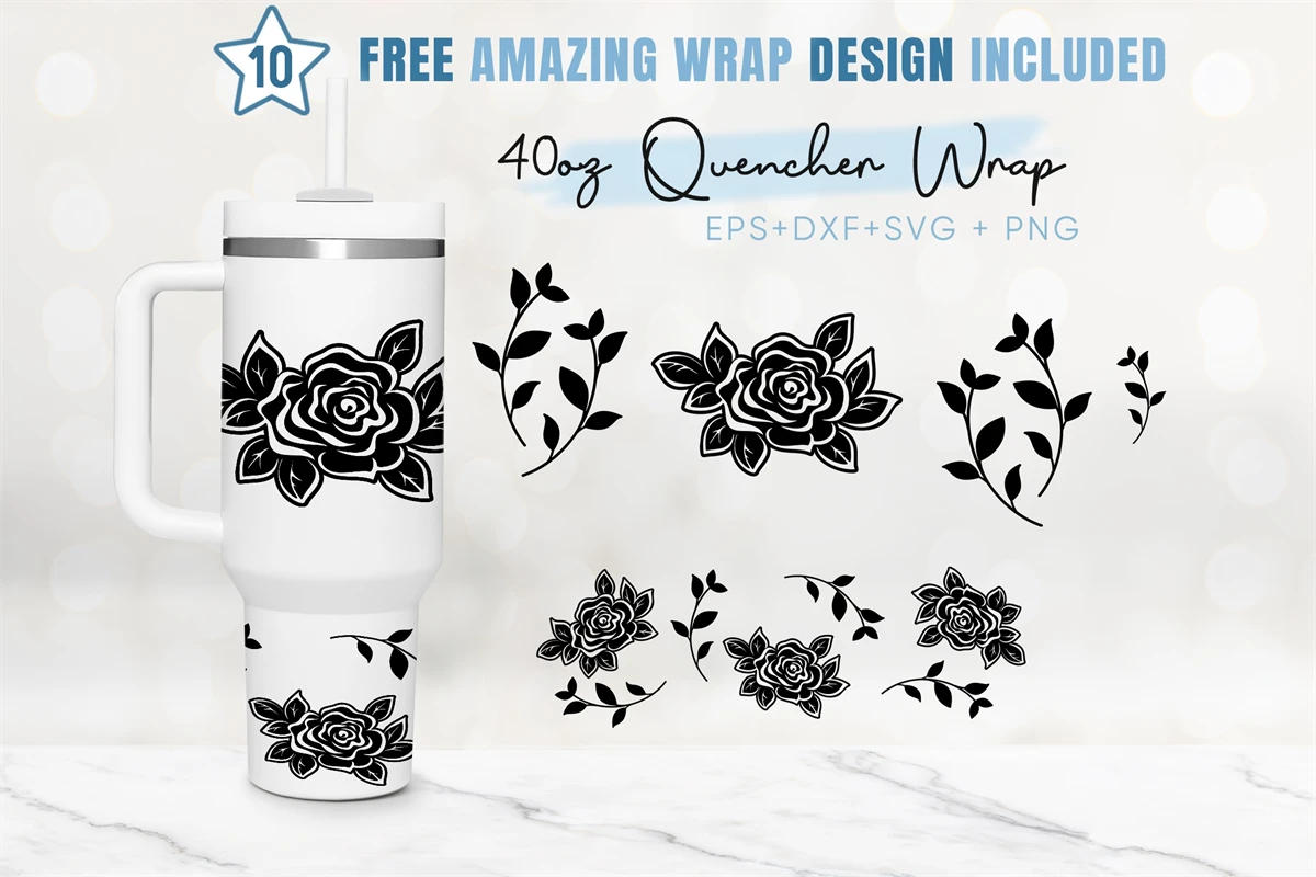 40oz Rose Quencher Tumbler, Roses Svg, Flower Svg