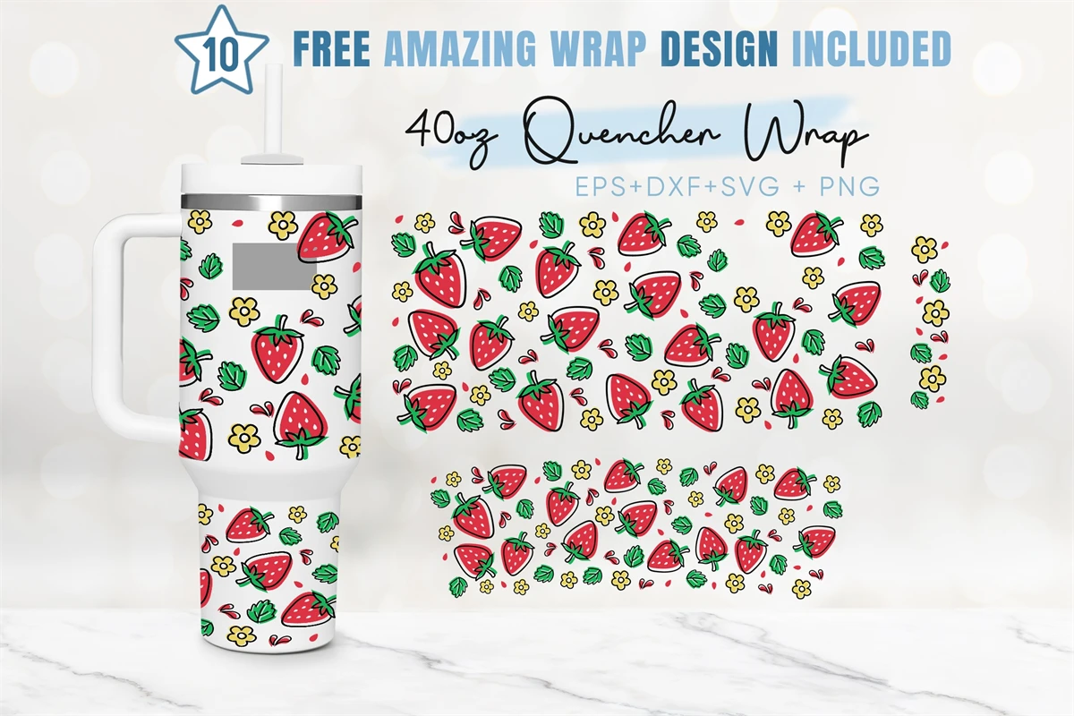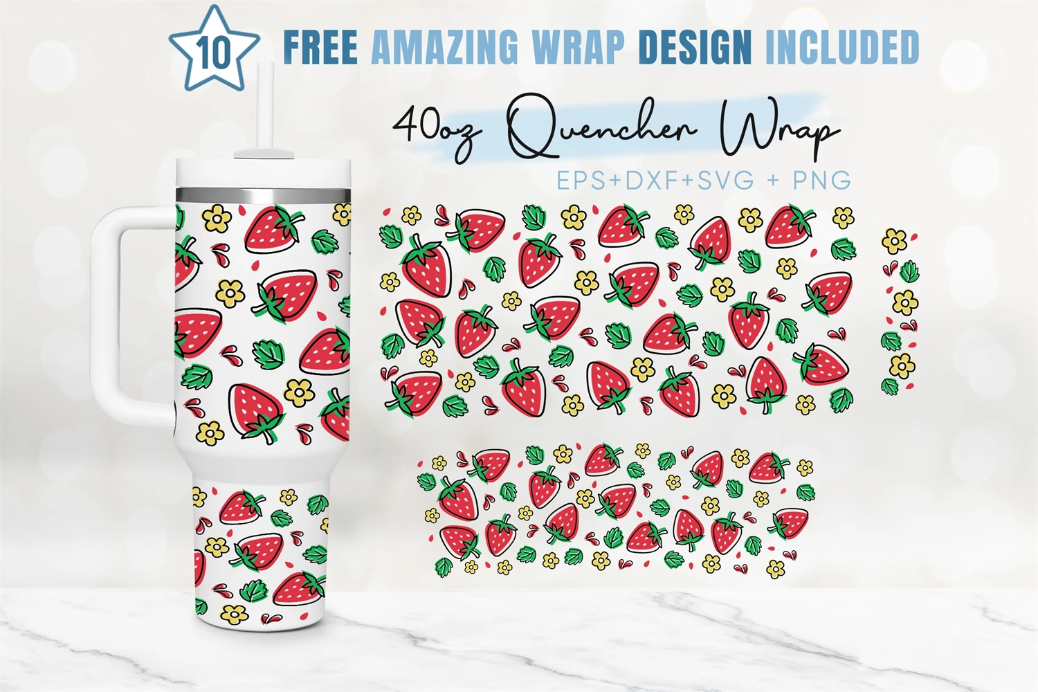40oz Strawberry Quencher Tumbler, Strawberry Pattern Svg