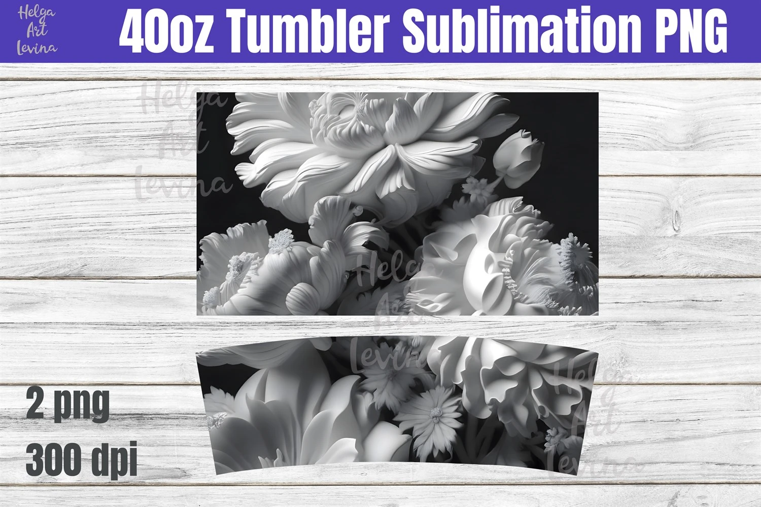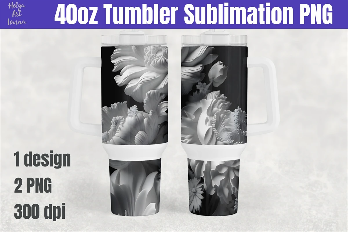 40oz Tumbler Sublimation. 3D Flowers