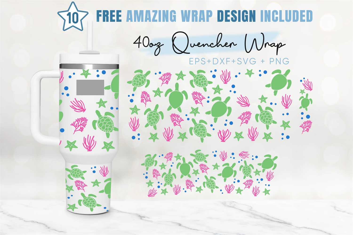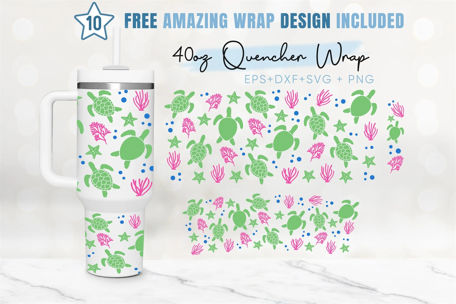 40oz Turtle Quencher Tumbler,Cute Sea Turtle Svg, Tropical
