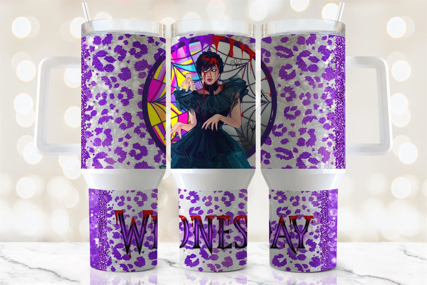 40oz Wednesday Quencher Tumbler Wrap Png, Spider Web,Leopard