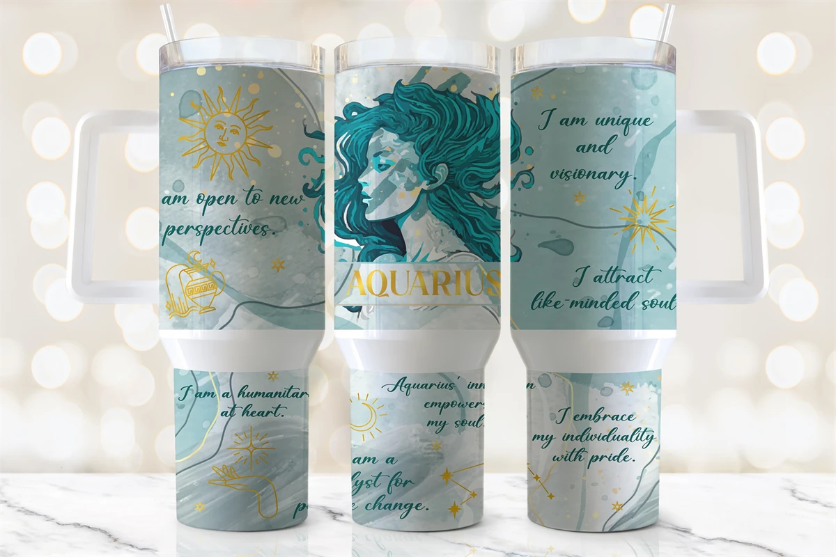 40oz Zodiac Signs AQUARIUS Quencher Tumbler Png, Aquarius