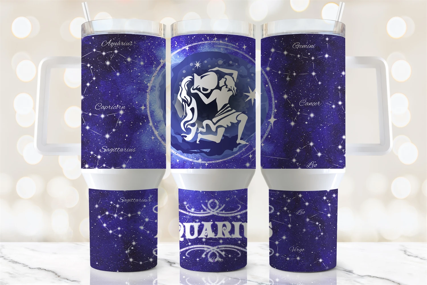 40oz Zodiac Signs AQUARIUS Quencher Tumbler Png, Horoscope