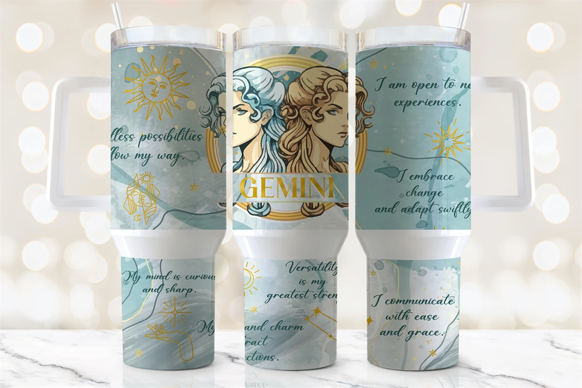 40oz Zodiac Signs Gemini Quencher Tumbler Wrap Png, Gemini