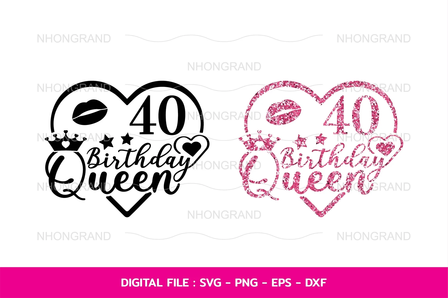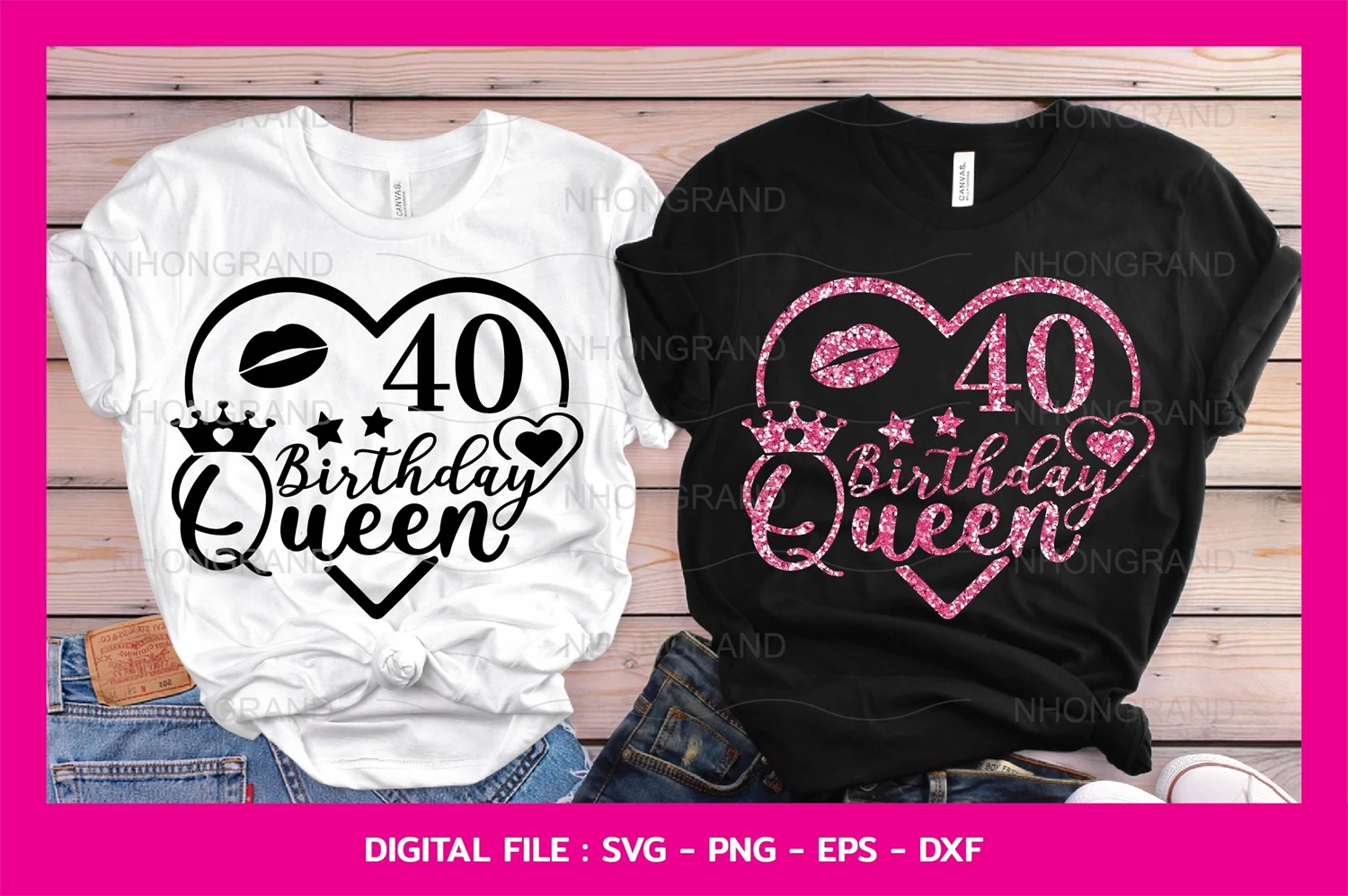 40th birthday queen with heart crown and glitter shirt cutie anniversary, Cricut Files, svg, png, eps, dxf, Download