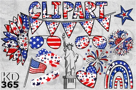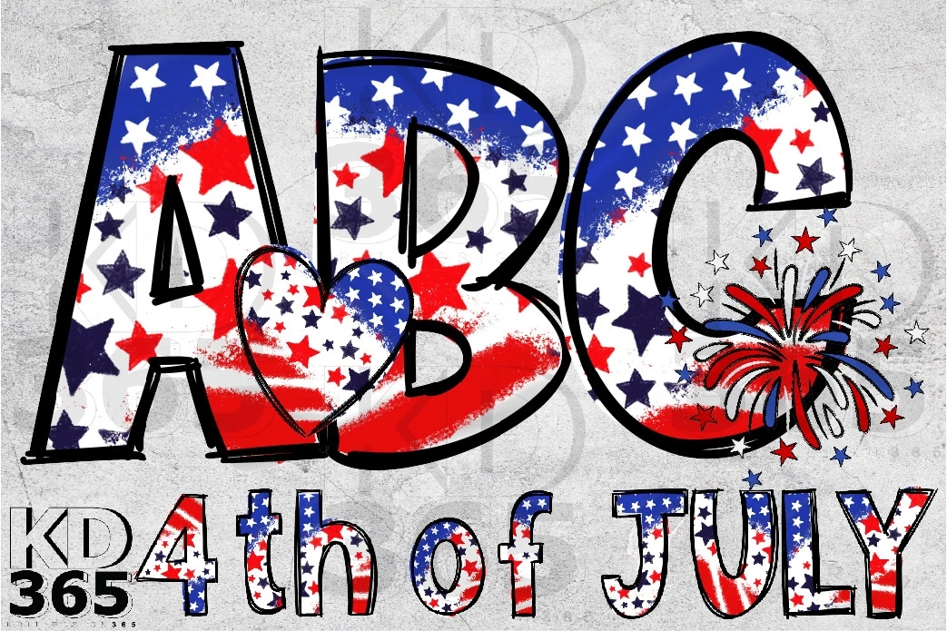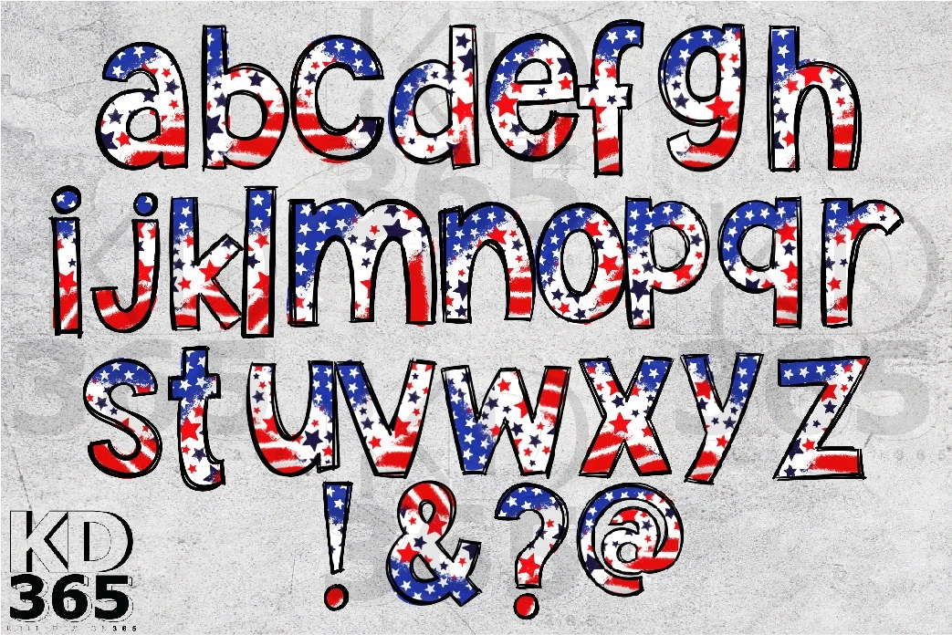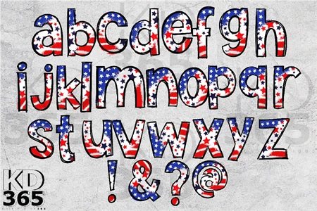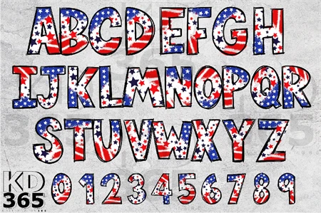 Alphabet PNG Sublimation Design Patriotic American Flag with red and white