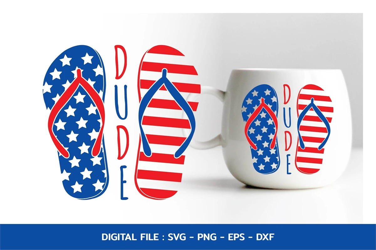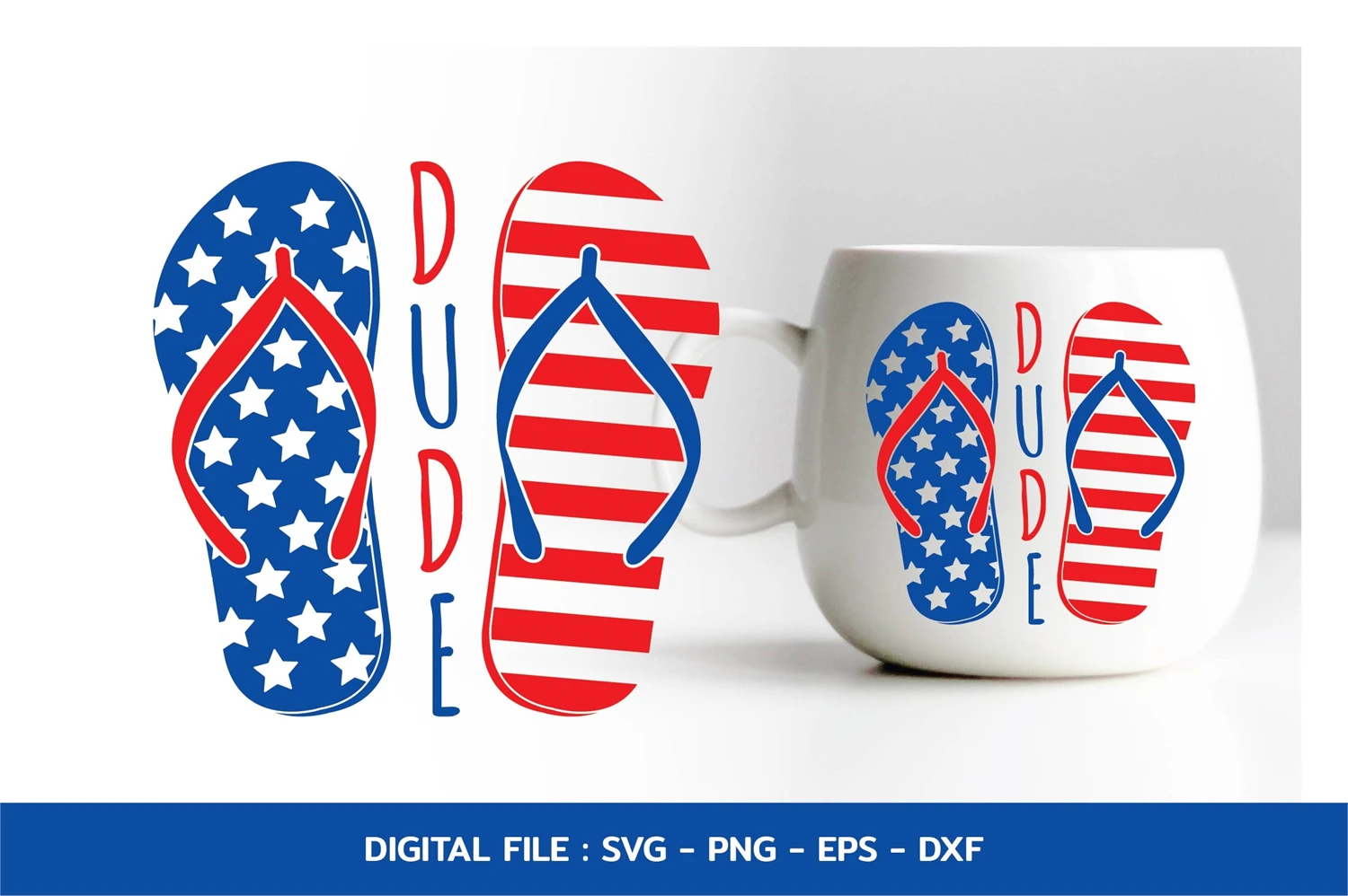 4th of july america flag Slippers or flip flop , Cricut Files, svg, png, eps, dxf, Instant Download
