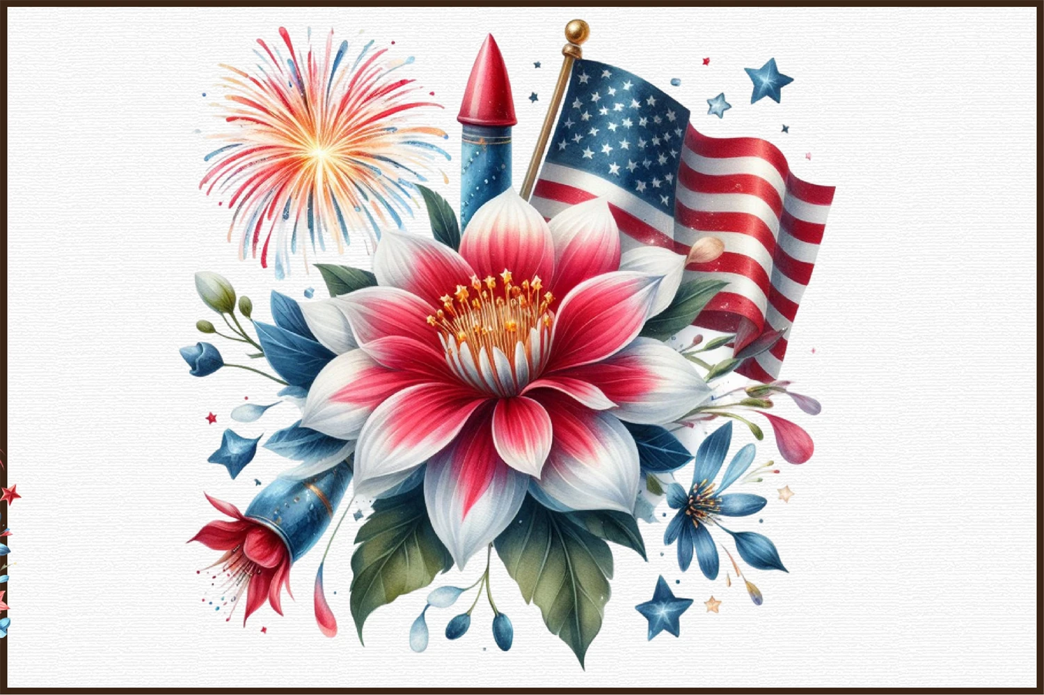 4th of July American flower Firework Clipart