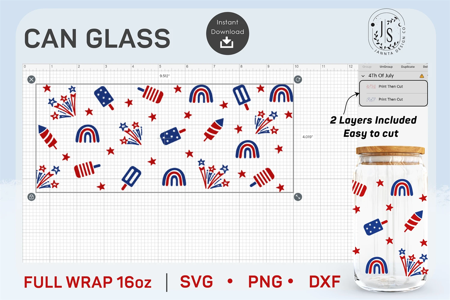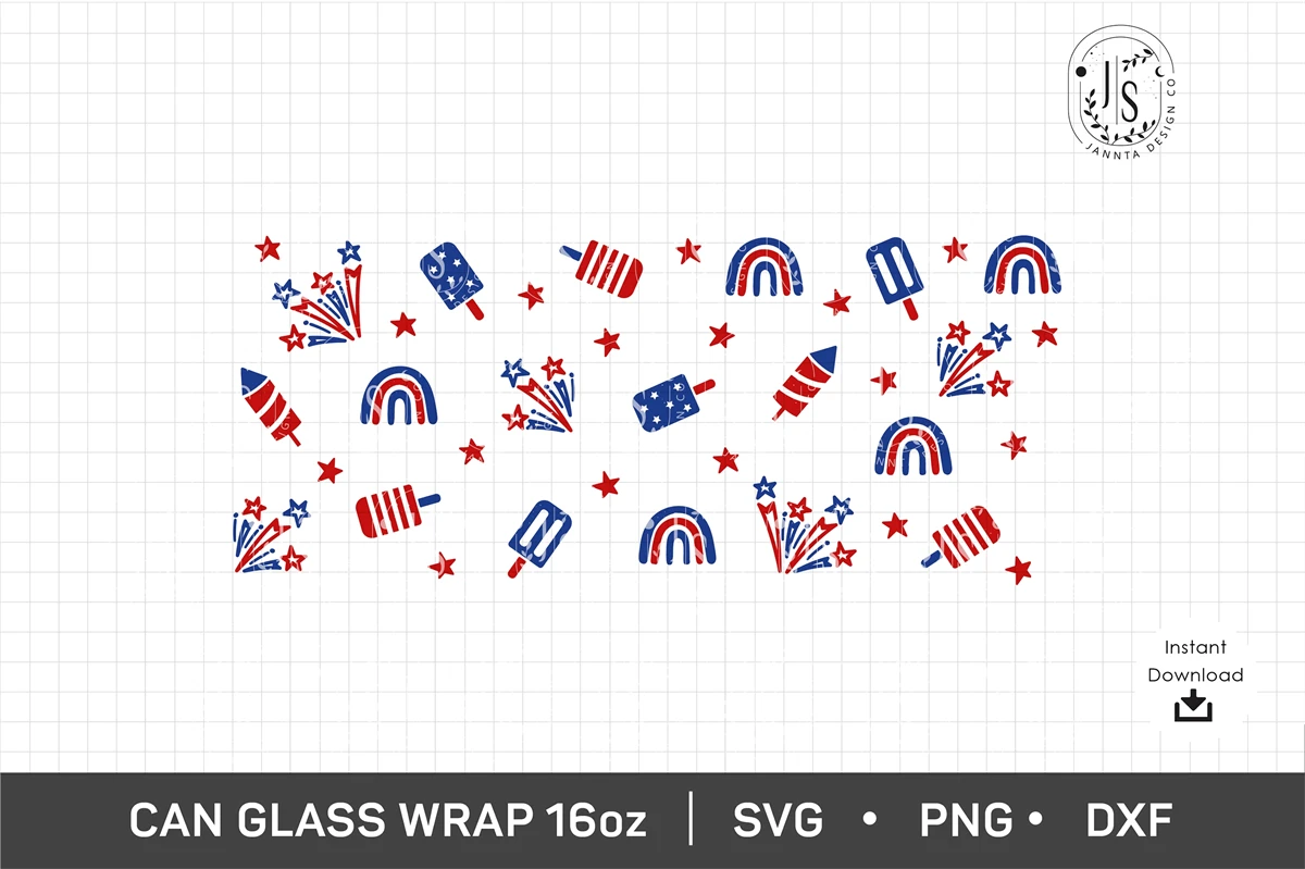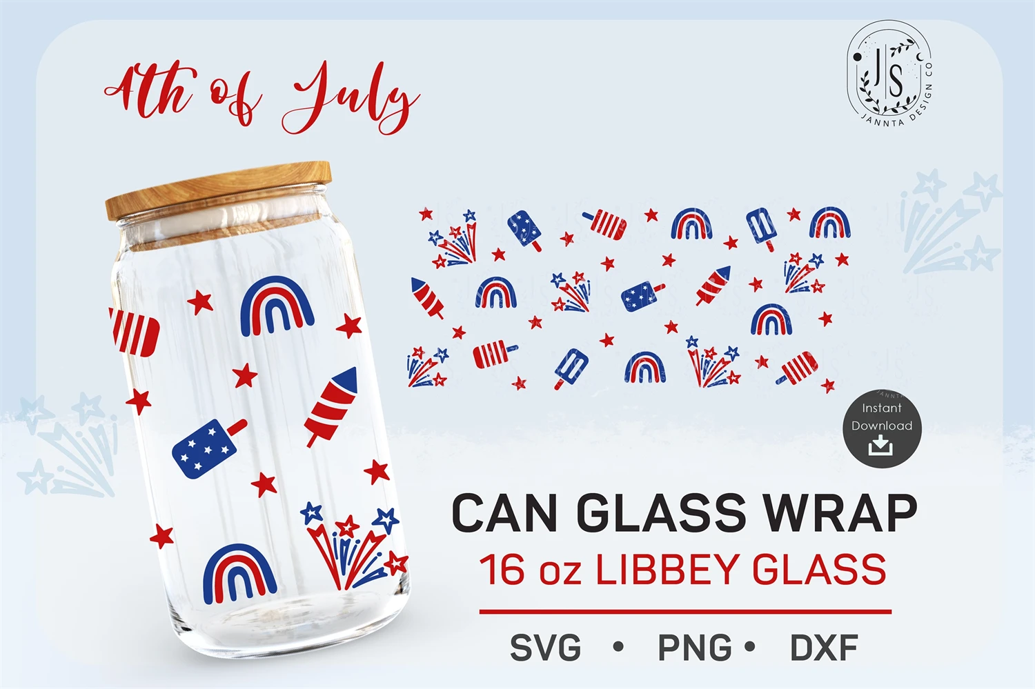 4th of July Can Glass SVG, Fourth Of July PNG, Independence Day Can Glass Wrap SVG, Full Wrap for Can Glass 16oz, Seamless Wraps, PNG Digital Download Template