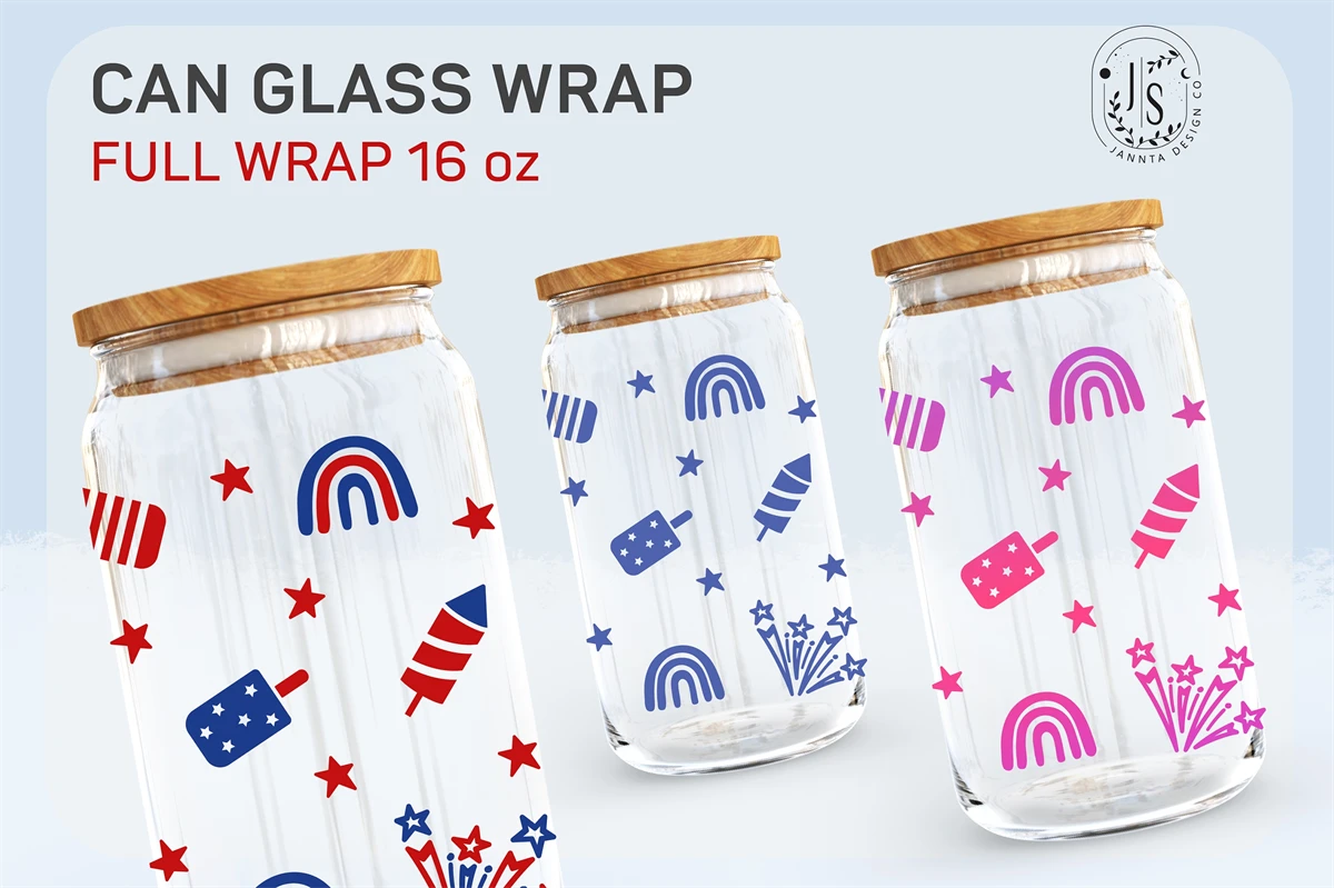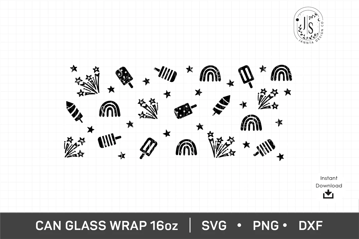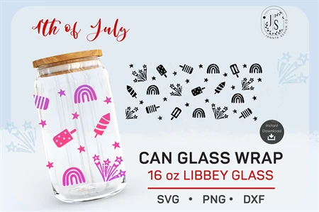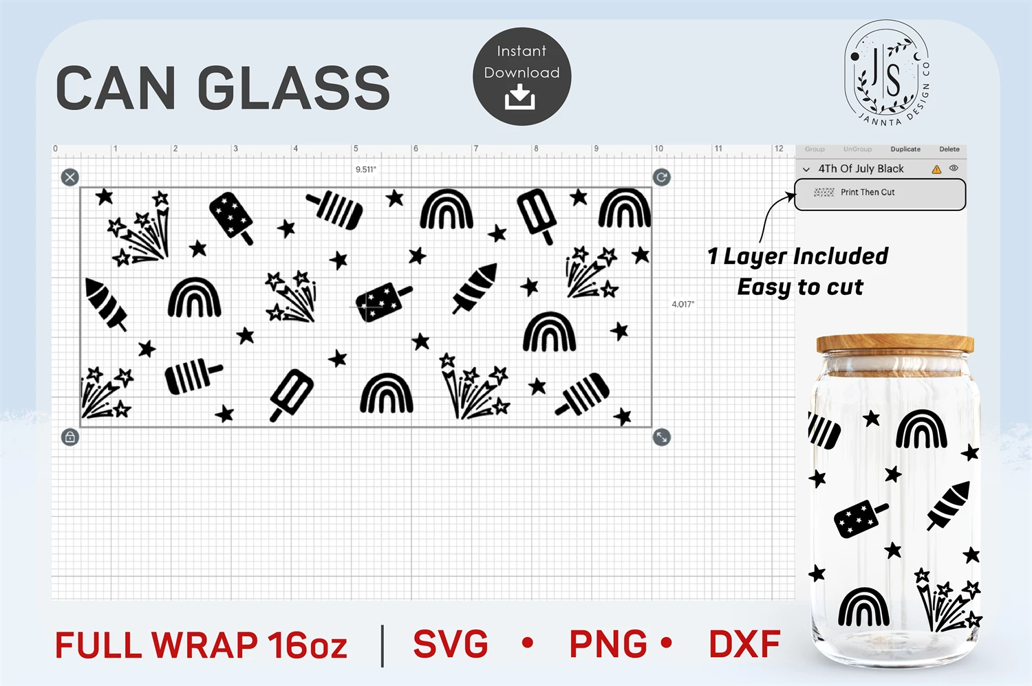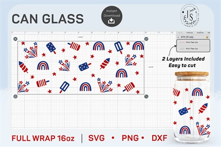 4th of July Can Glass SVG, Fourth Of July PNG, Independence Day Can Glass Wrap SVG, Full Wrap for Can Glass 16oz, Seamless Wraps, PNG Digital Download Template