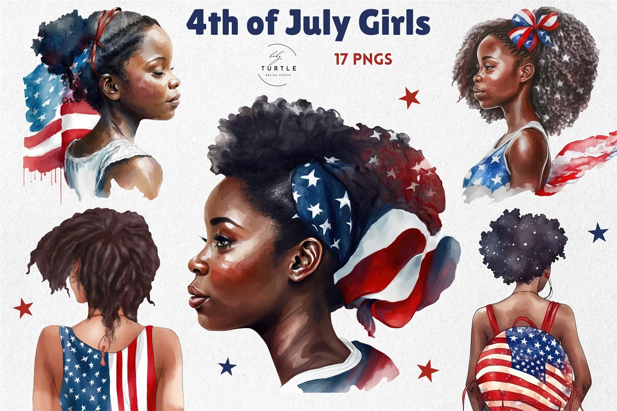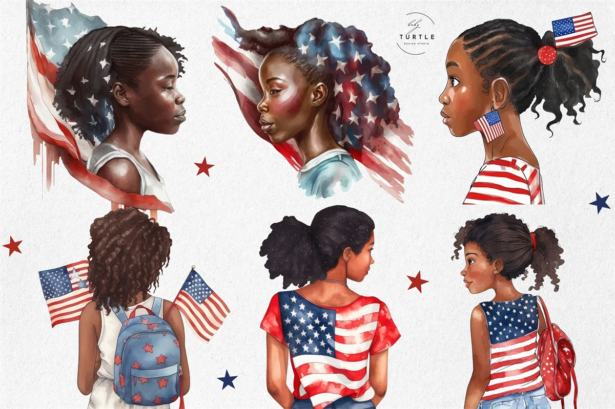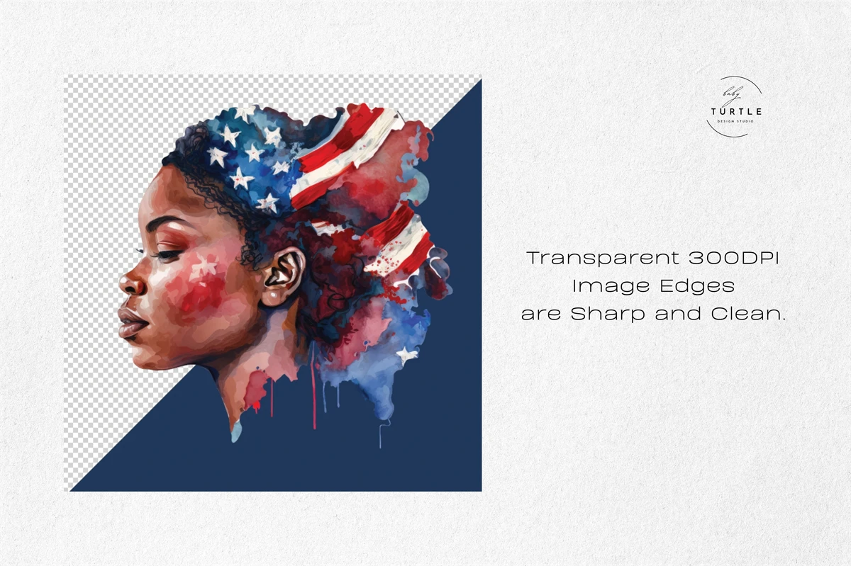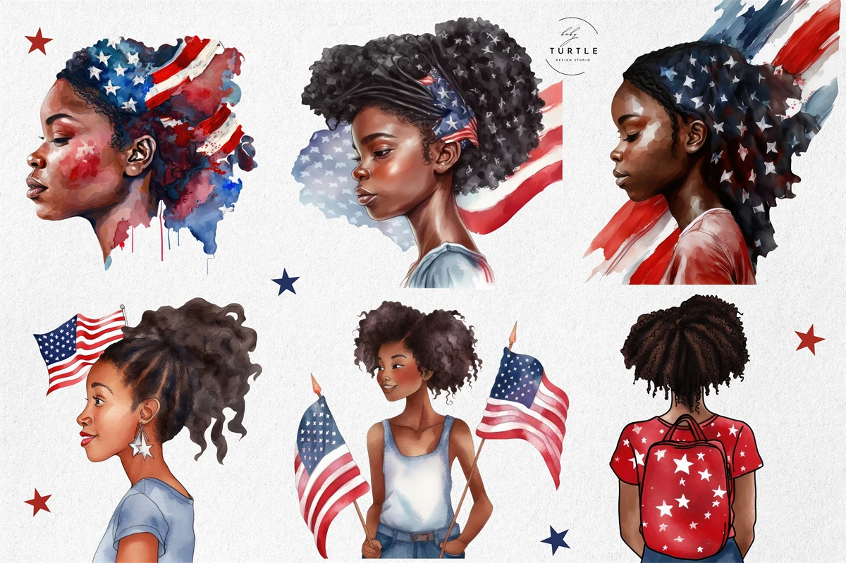 4th of July Girl png, 4th of July PNG, Independence Day Clipart, Patriotic Girl, African American Woman PNG, Red Blue png, American Flag PNG