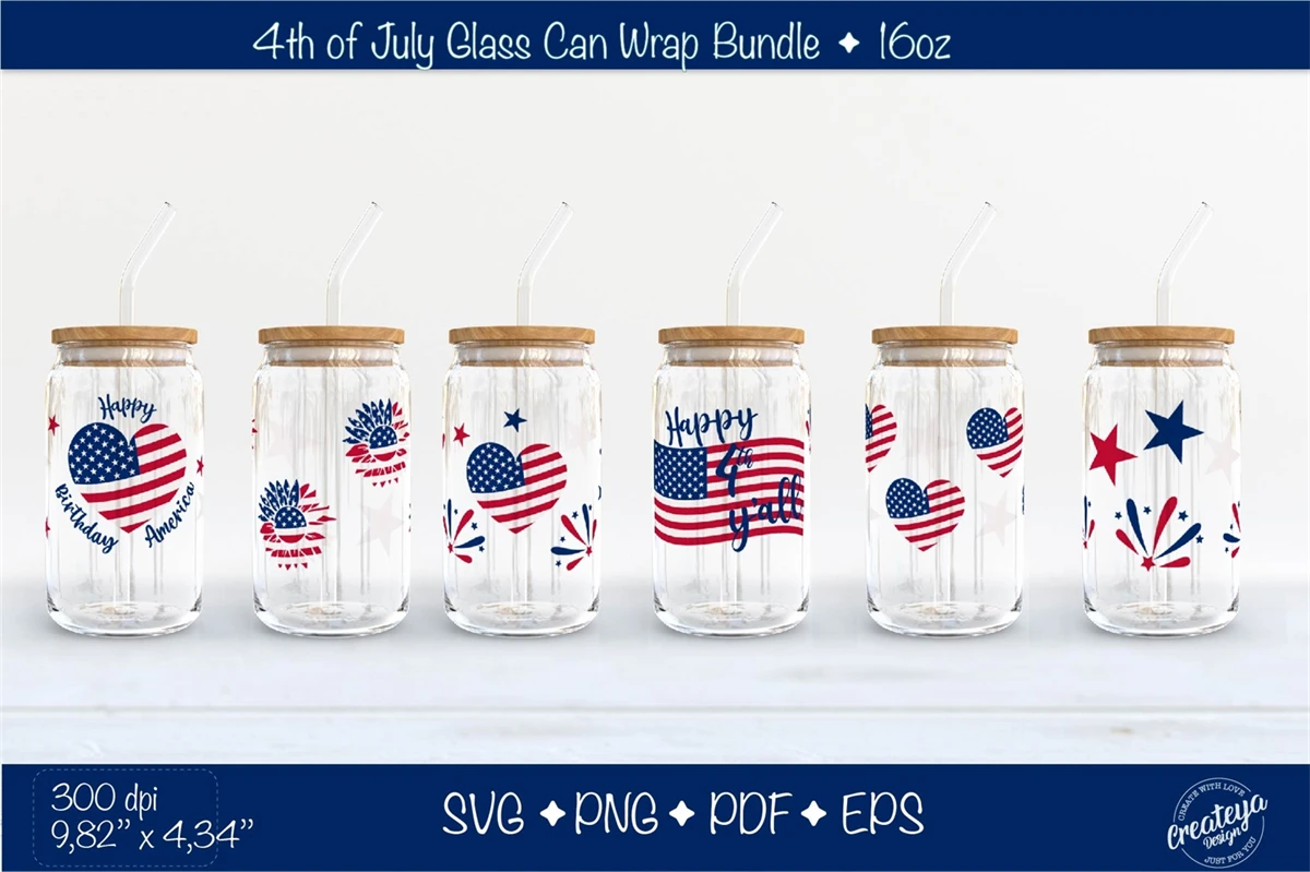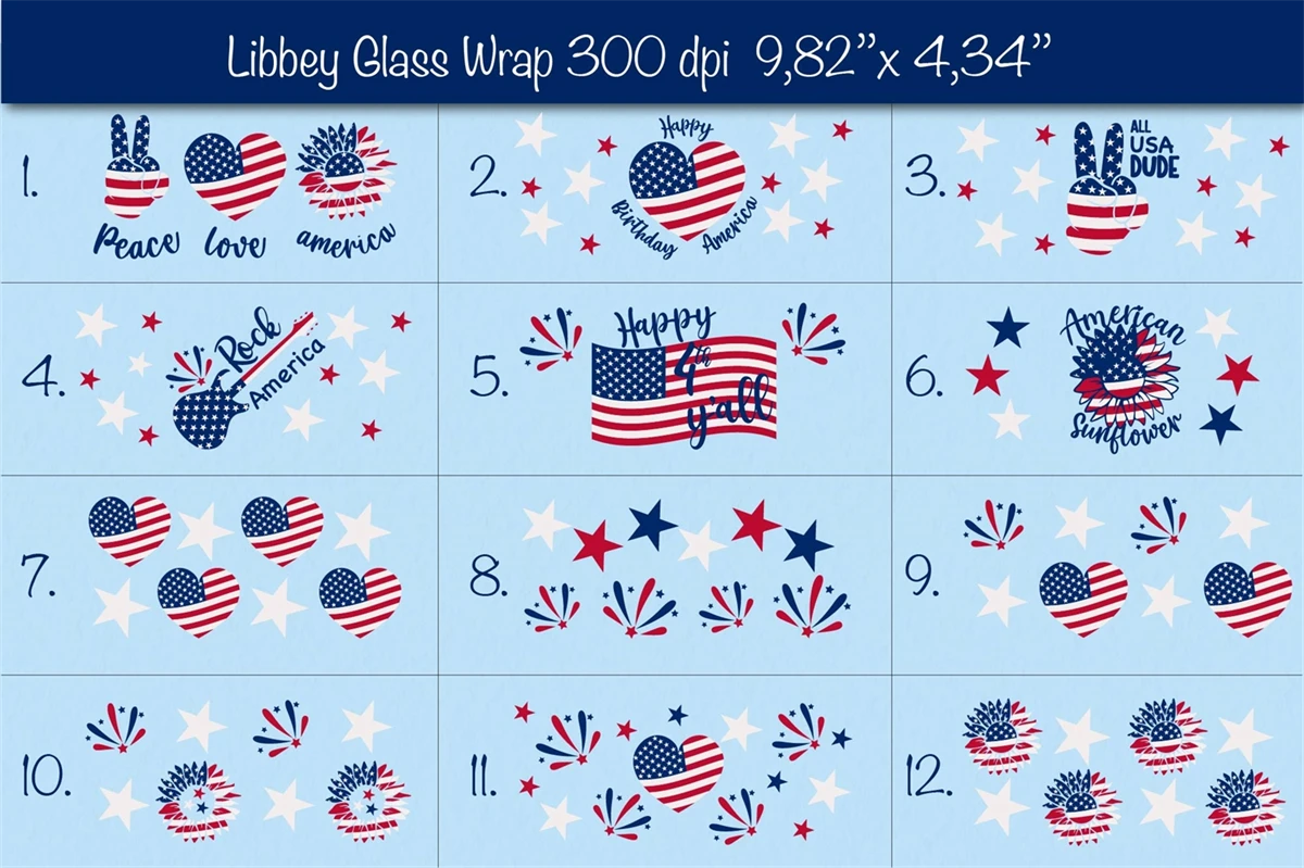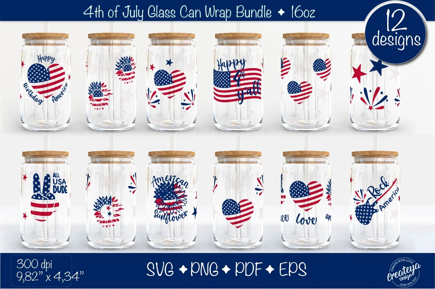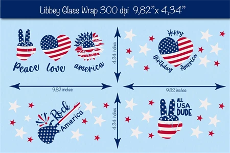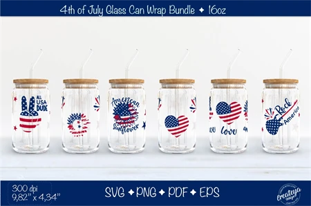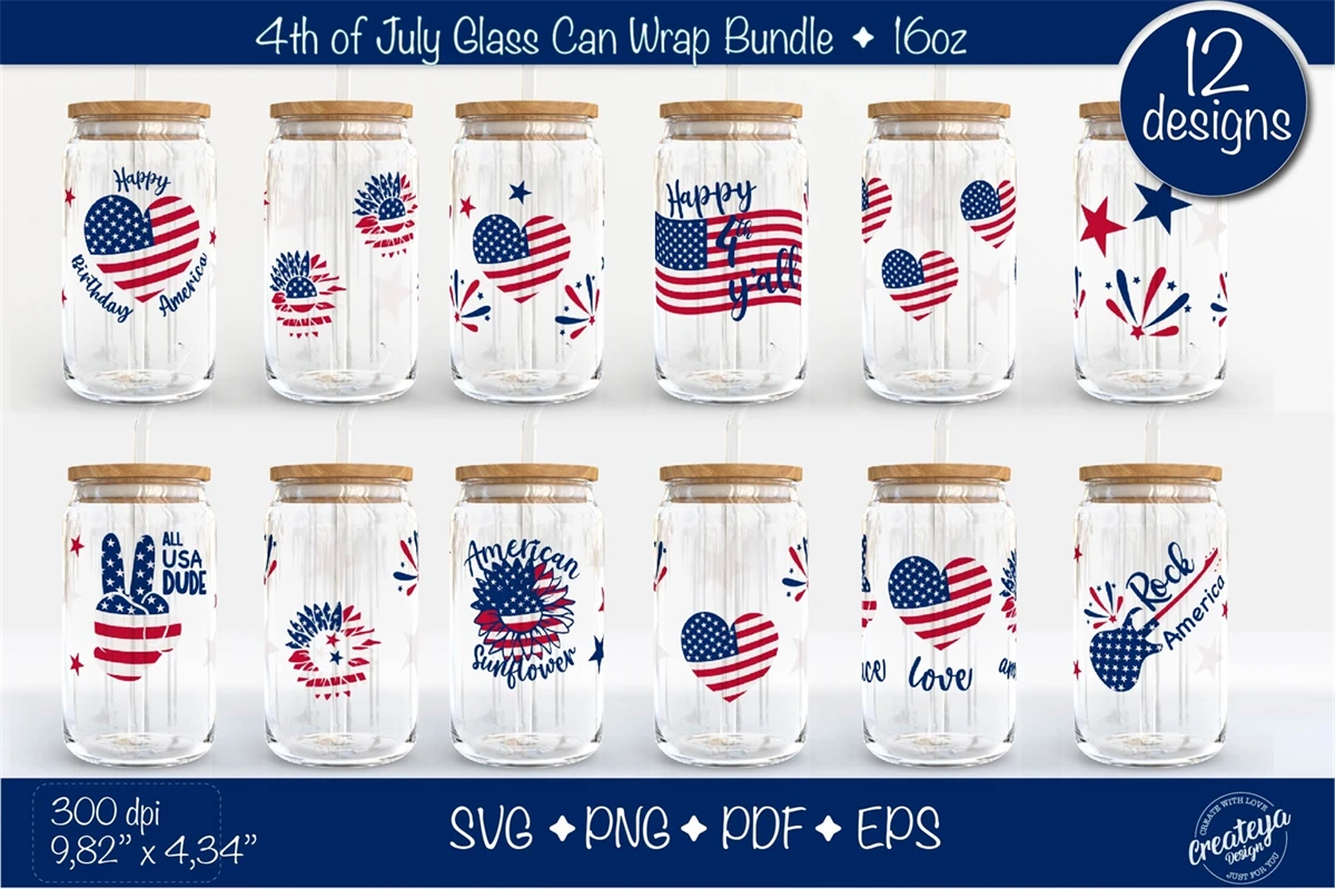 This 4th of July glass wrap Bundle (16 oz) with 12 Patriotic Beer glass can wrap designs can be used with Cricut cutting machines, as well as other cutting machines that can read formats that are included in the listing.