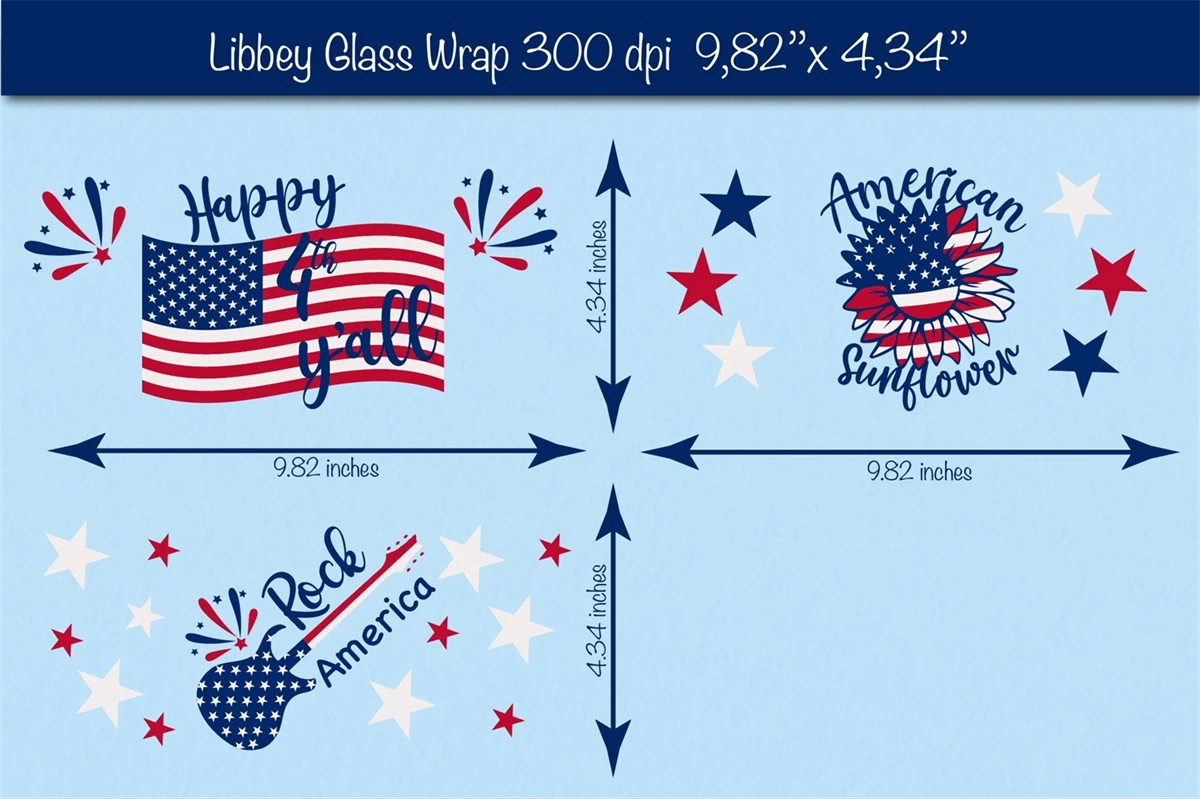 This 4th of July glass wrap (16 oz) with 3 Patriotic Beer glass can wrap designs Rock America, Happy 4th yall, American Sunflower can be used with Cricut cutting machines, as well as other cutting machines that can read formats that are included in the listing.