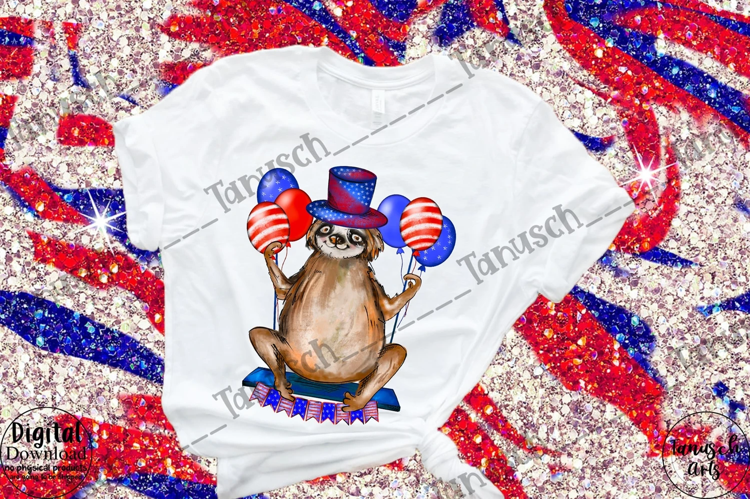Hand painted cute Watercolor cute 4th of July Sloth Sublimation