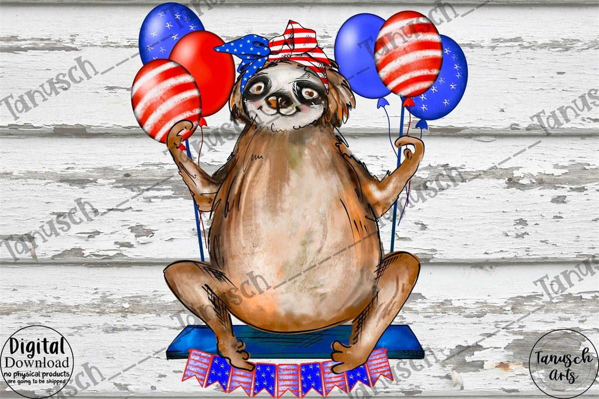 Hand painted cute Watercolor cute 4th of July Sloth Sublimation