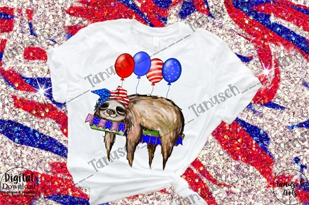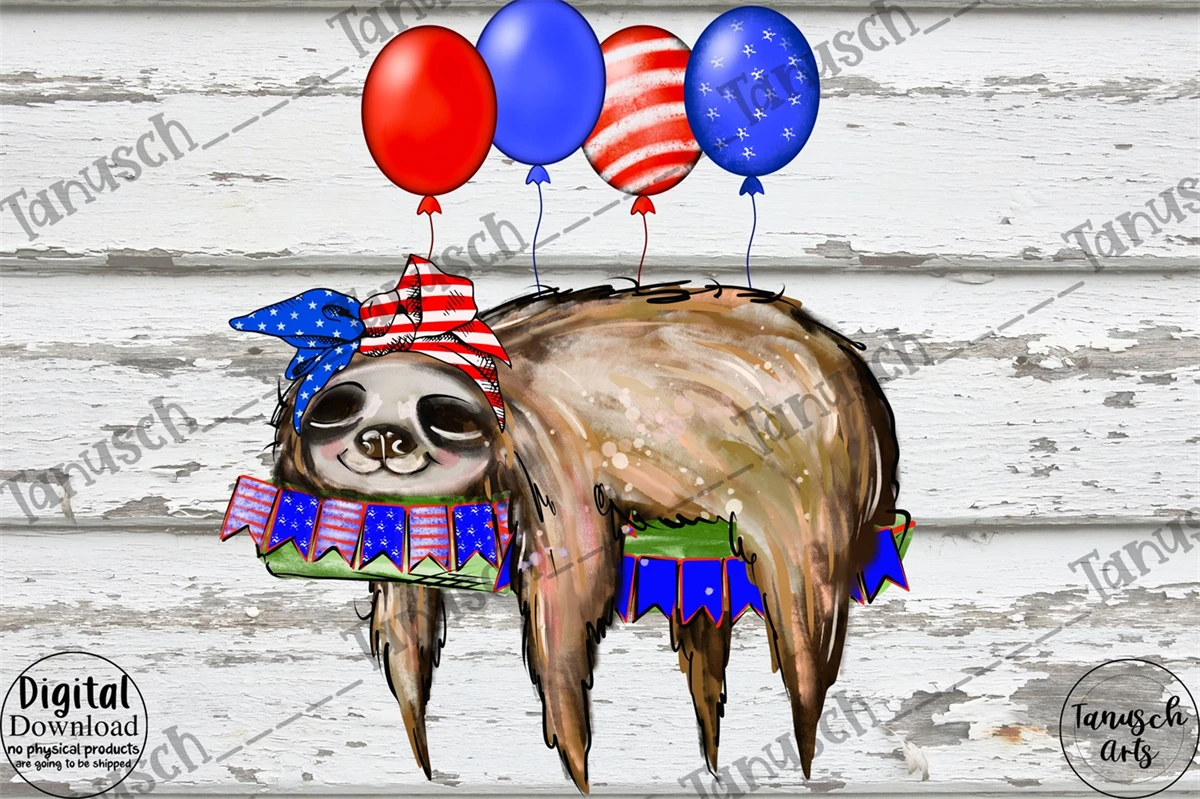 Hand painted cute Watercolor cute 4th of July Sloth Sublimation