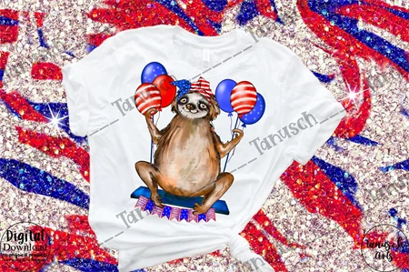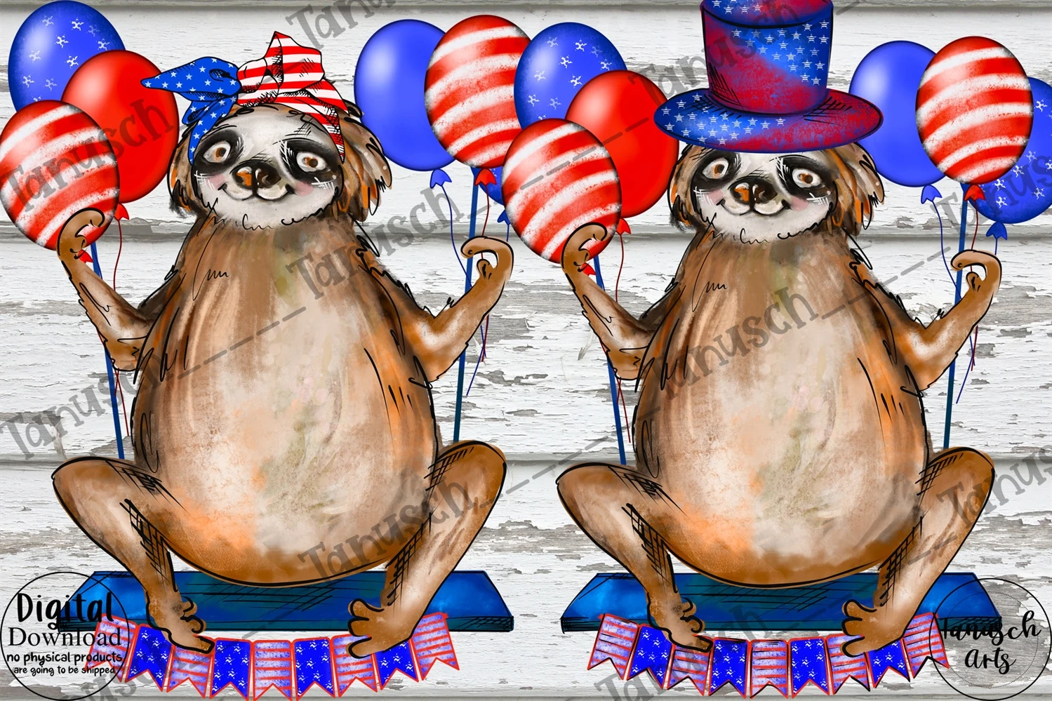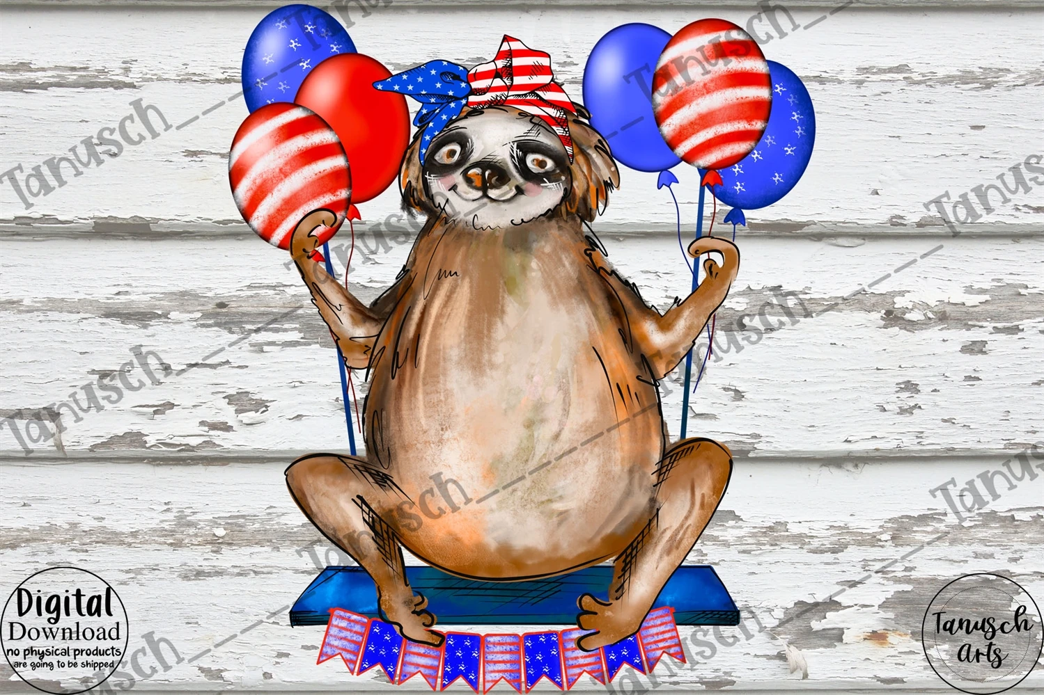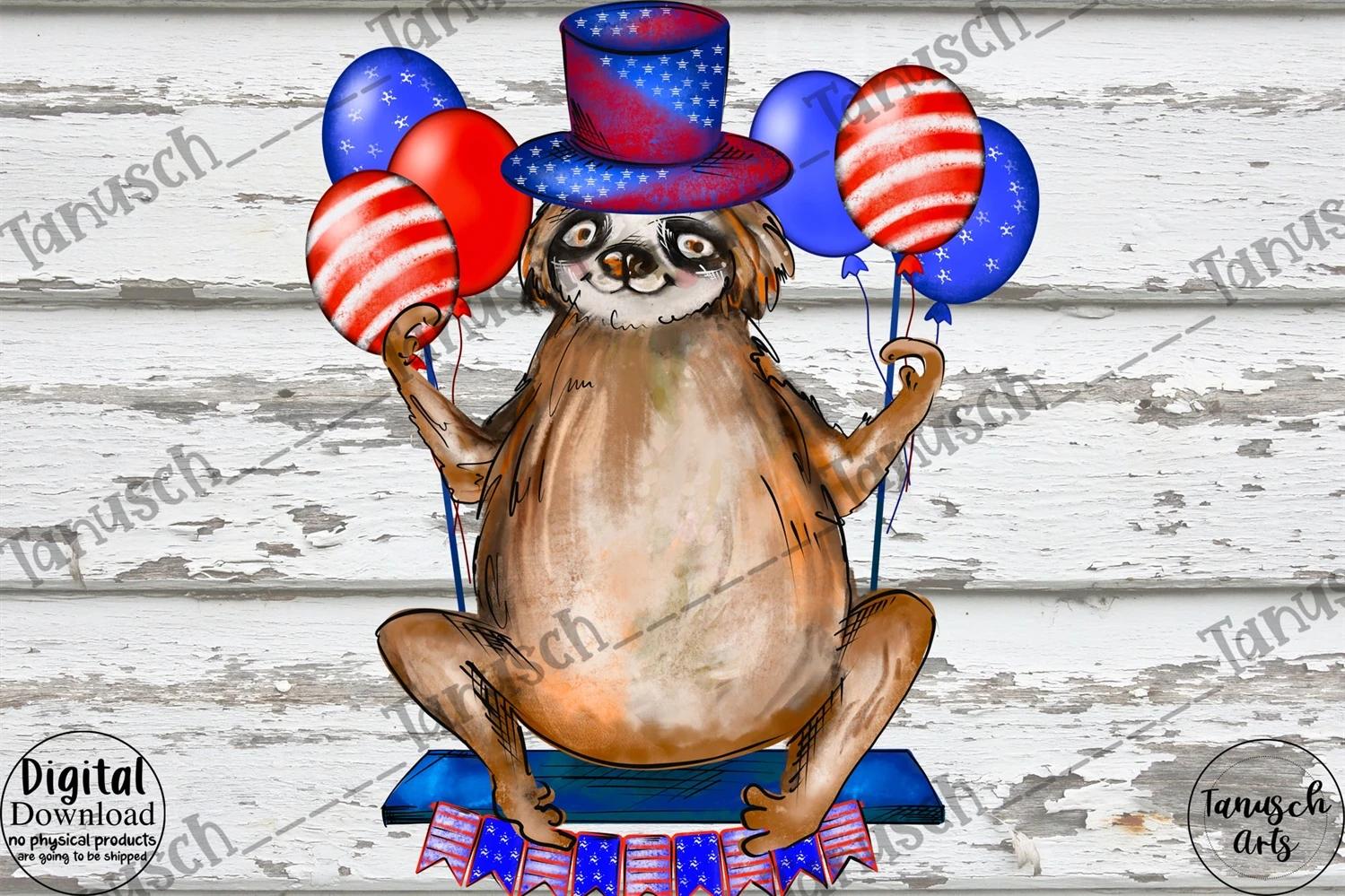 Hand painted cute Watercolor cute 4th of July Sloth Sublimation